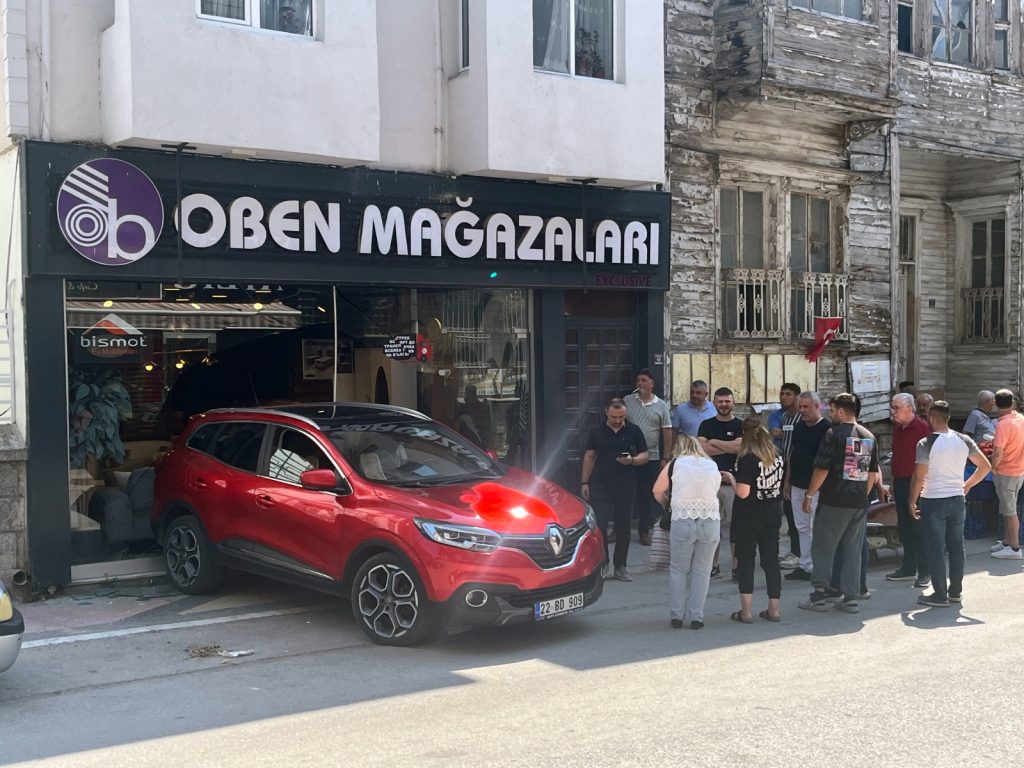 Edirne Merkez ilçe Dilaverbey Mahallesi’nde bulunan bir mobilya mağazası önüne aracını yanaştıran sürücü Selahattin Çelik, geri viteste unuttuğu aracından indi. Geri viteste kalan araç mobilya dükkanına daldı. Çelik, sürücü koltuğuna binip müdahale etmeye çalışsa da başarılı olamadı. Kazada, yaralanan olmazken, ihbarla gelen polis ekipleri tutanak tuttu. Kaza sonucu mobilya mağazasında maddi hasar oluştu.