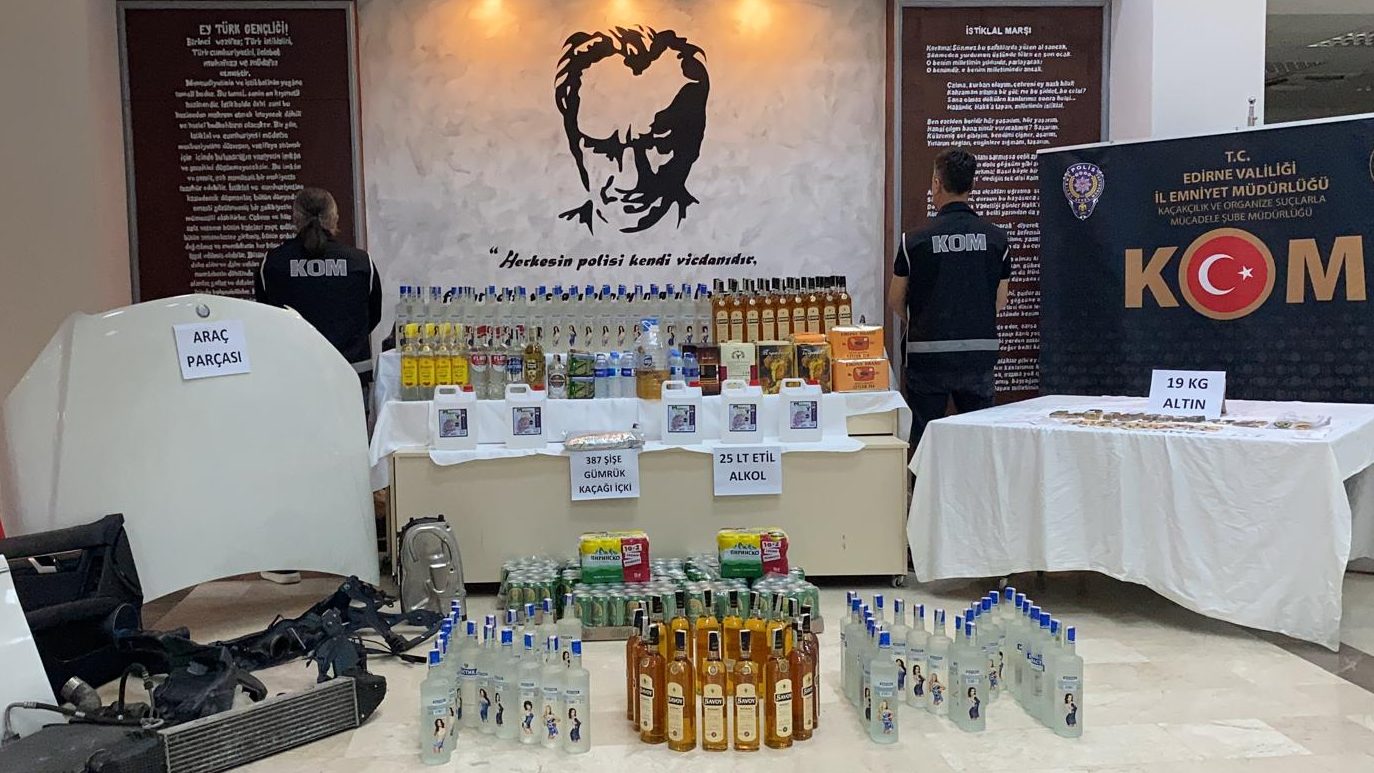 Edirne’de 1 Mayıs tarihinde Edirne İl Emniyet Müdürlüğü KOM Şube Müdürlüğü, İstihbarat Şube Müdürlüğü ve Kapıkule Gümrük Müdürlüğü ile koordineli olarak gerçekleştirilen 3 farklı operasyonda; 18 kg 725 gram altın, çok sayıda kaçak alkollü içki ve 7 adet lüks araca ait parçalar ele geçirildi. Ele geçirilen kaçak ürünlerin değerinin, toplamda 50 milyon lira olduğu açıklandı.