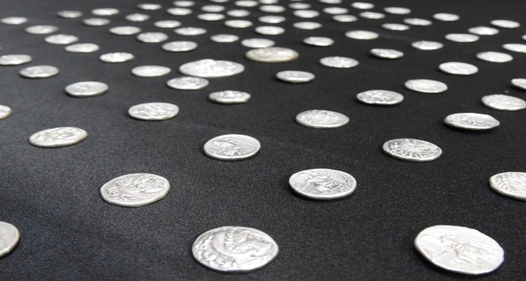 Türkiye'den yurt dışına çıkış yaparken yakalanan iki şüpheliden, Helenistik döneme ait, ön yüzünde Büyük İskender’in Herakles tarzı portresi ve arka yüzünde Yunan Tanrısı Zeus figürleri bulunan çok sayıda tarihi nitelikte gümüş sikke ele geçirildi.