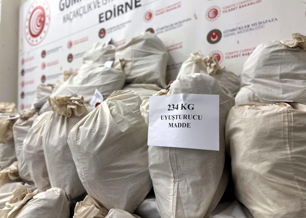Kapıkule Sınır Kapısı üzerinden Türkiye'ye giriş yapan otobüste, narkotik köpeği 'Turbo'nun yardımıyla yapılan arama sonucu, aracın çamurluk ve motor kısmında 233 kilo 988 gram esrar ele geçirildi. Gözaltına alınan otobüs sürücüsü tutuklandı.