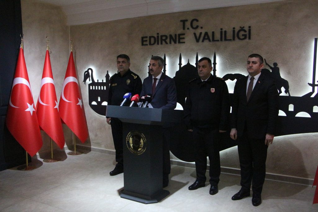 Edirne Valisi Yunus Sezer, kentteki kolluk kuvvetleri temsilcilerinin katılımıyla gerçekleştirilen olağan asayiş toplantısının ardından basın toplantısı düzenledi. Vali Sezer, kentteki asayiş ve sınır güvenliğine yönelik alınan yeni kararlarla, istatistiki verileri paylaşırken, Edirne’nin Yunanistan sınırına bu yıl içerisinde, fiziki sınır güvenlik tedbirleri kapsamında duvar yapılacağını açıkladı.