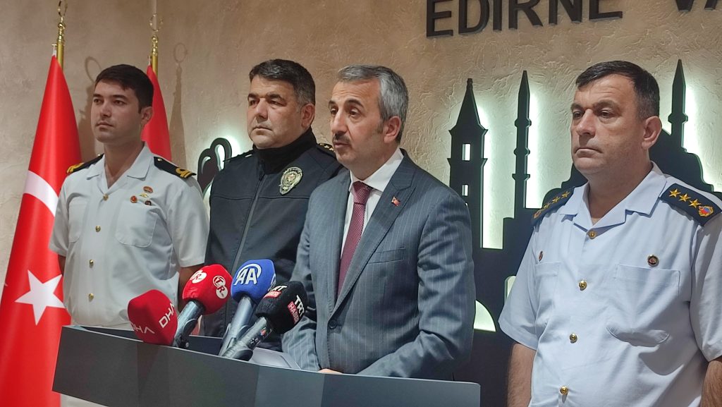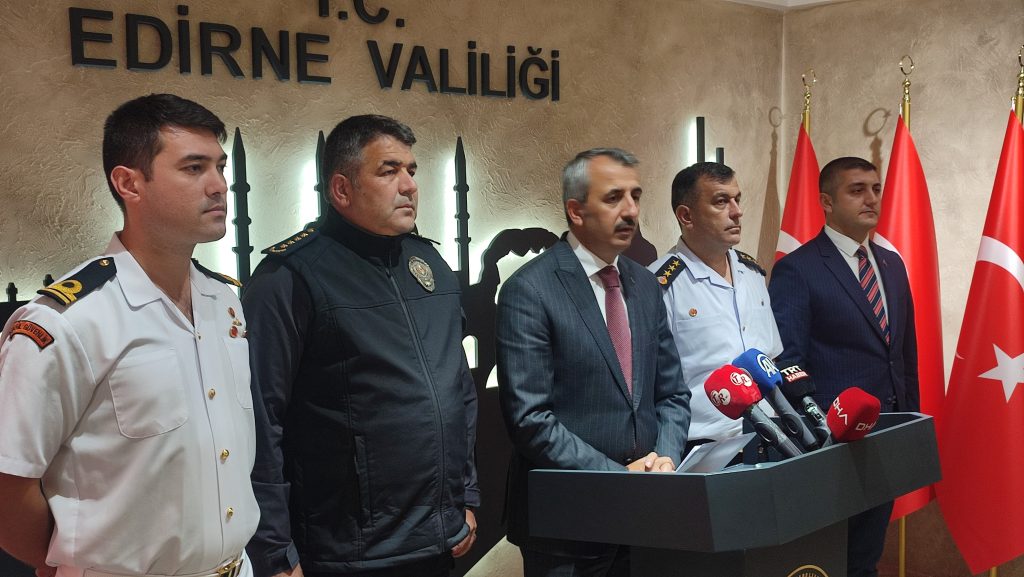 Edirne Valisi Yunus Sezer, valilik binasında gerçekleştirilen Eylül ayı asayiş toplantısının ardından basın mensuplarına açıklamalarda bulundu. Kentteki asayiş olaylarına dair verileri paylaşan Vali Sezer’e, İl Emniyet Müdürü Onur Karaburun, İl Jandarma Komutanı Albay Mehmet Kasım Ermiş, İl Göç İdaresi Müdürü Musa Aşılıoğlu ve 308 Bot Komutan Vekili Sahil Güvenlik Üsteğmen Enes Erata eşlik etti.