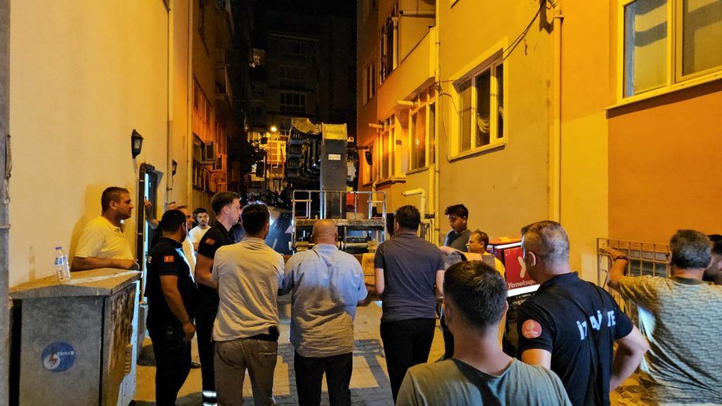 Yaklaşık 165 kilogram ağırlığında olduğu belirtilen Levent Özülkü’nün cenazesi, merdivenlerden indirilemeyince belediyeye ait vinç yardımıyla bulunduğu daireden çıkarılarak cenaze aracına alındı.