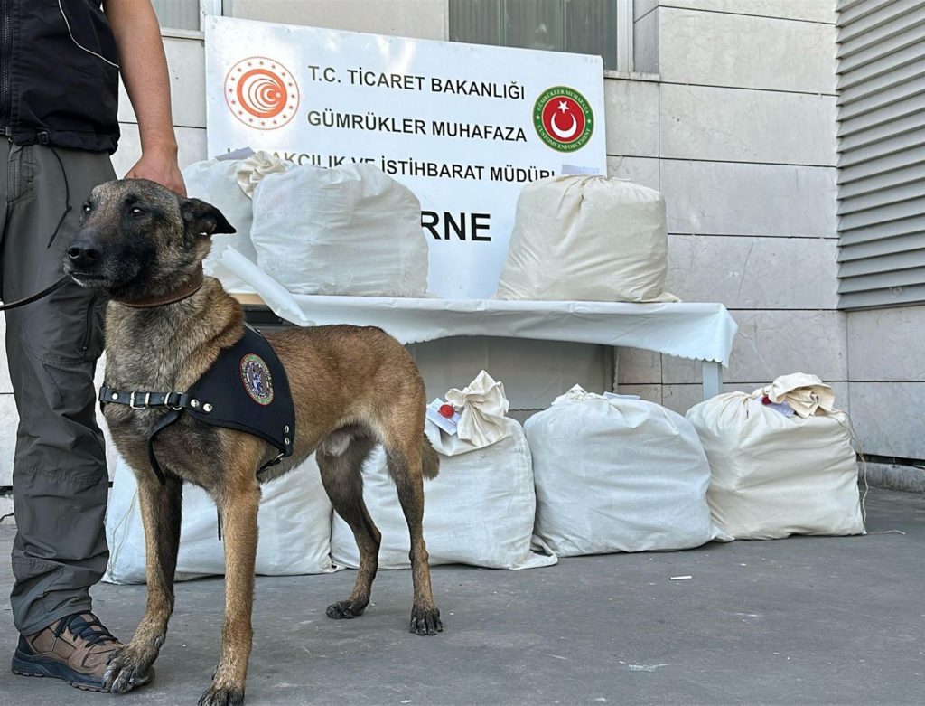 Edirne'den Bulgaristan'a açılan Kapıkule Sınır Kapısı’nda, yurda giriş yapan bir yolcu otobüsünde yapılan X-ray taramasında, şüpheli yoğunluk tespit edildi. Akabinde dedektör köpek 'Jeff'in de yardımıyla yapılan arama sonucu 93 paket halinde gizlenmiş 87 kilo 752 gram uyuşturucu bulundu.