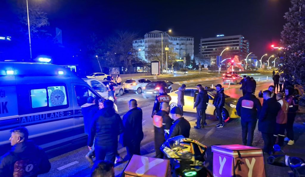 Edirne’nin Atatürk Bulvarı üzerindeki kavşakta gece saatlerinde zincirleme trafik kazası meydana geldi. Kentin Erasta AVM’nin önünde ilerleyen A.C. yönetimindeki otomobil, trafik ışıklarında bekleyen Ö.G.’nin yönetimindeki taksiye arkadan çarptı. Taksi, çarpmanın etkisiyle savrularak önündeki iki araca çarptı. Kazada, taksi sürücüsü Ö.G. ve yolcusu yaralanırken, çevredekilerin ihbarı üzerine bölgeye sağlık ve polis ekipleri sevk edildi. Yaralılar, olay yerindeki ilk müdahalelerin ardından Trakya Üniversitesi Tıp Fakültesi Hastanesi’ne sevk edildi.