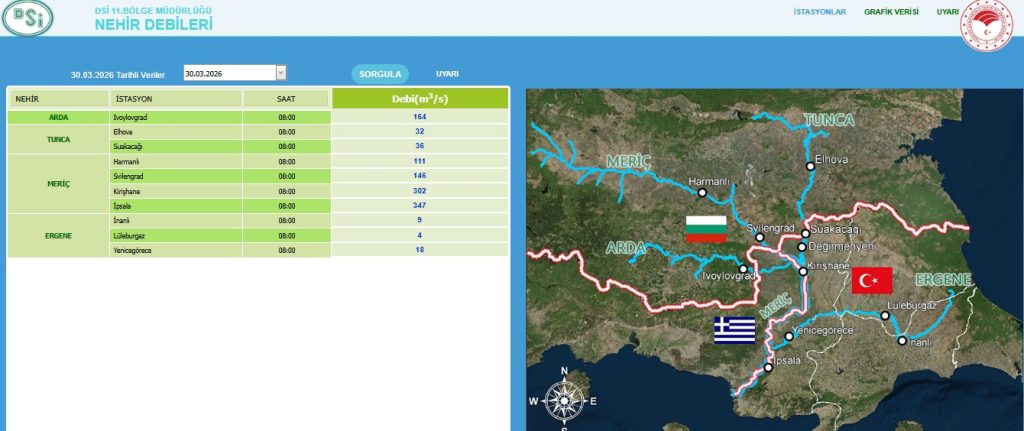 - Arda Nehri: Ivaylovgrad istasyonunda debi 164 m³/s seviyesinde seyrediyor.
