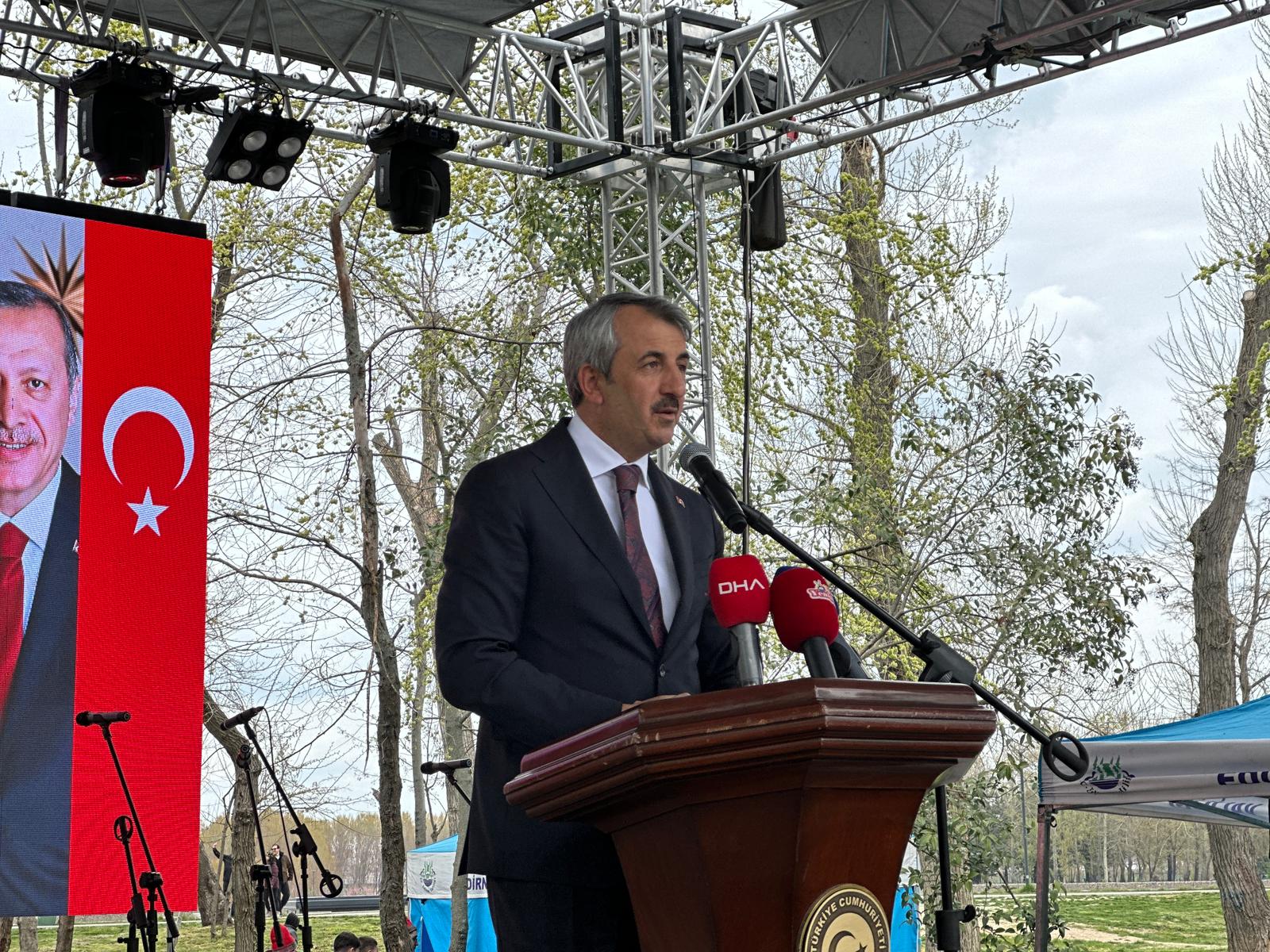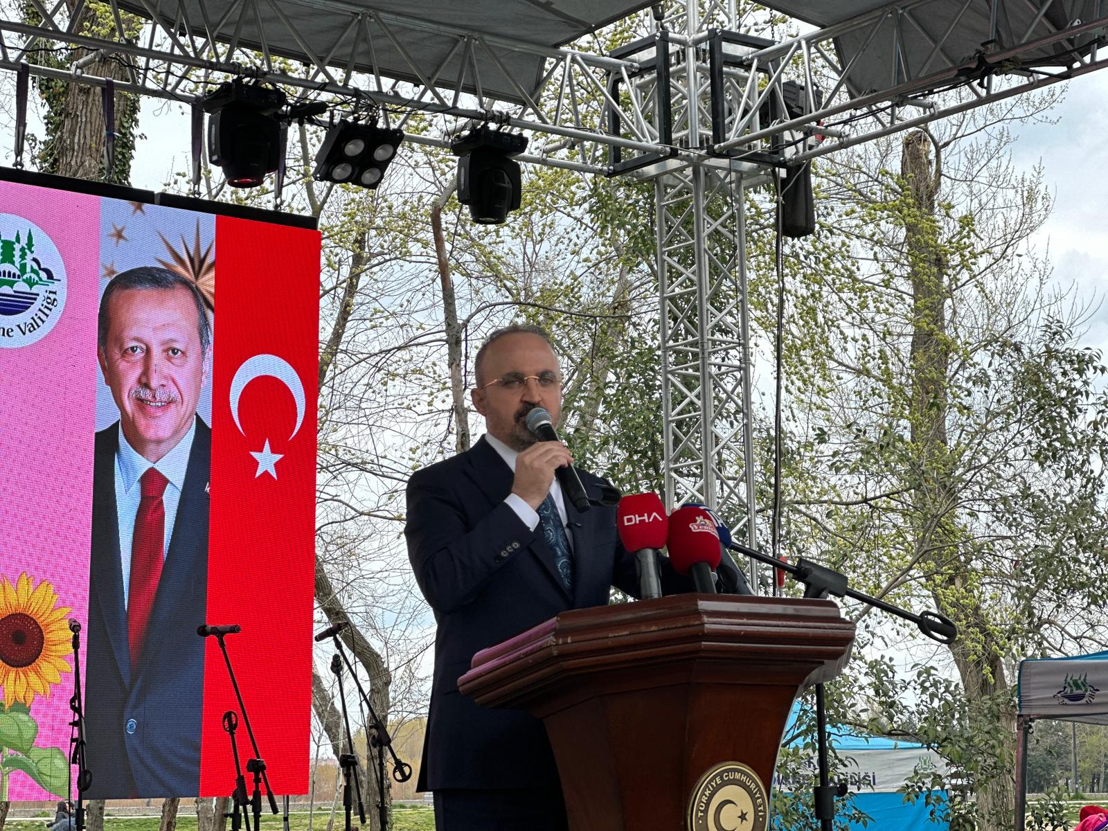 Nevruzun bir ayrışma değil, birleşme günü olduğunu vurgulayan Turan, "Nevruz yeniden diriliş demek. Nevruz, uyanış demek, ayağa kalkmak demek. Bir yandan bahar, bir yandan umut demek. Türklerin aynı zamanda Sasani ve İran medeniyetlerinin kutlamış olduğu özel bir bayram. 2009’da UNESCO’nun Kültürel Miras Listesi içerisinde yer alması ayrı bir başarı bizler için. Bakınız değerli misafirler, Nevruz yeni gün demek, doğmak demek, diriliş demek. Nevruz çıkış demek. Çiçeğin topraktan çıkması, bu milletin demirleri eriterek dağlardan çıkması demek. Bu özel bayram maalesef yıllarca istismar edildi. Sanki terör örgütlerinin, sanki yanlış yapılanmaların bir anlamda gösterisi demek olarak algılandı. Oysa tam da Türk’ün bayramı anlamına gelen çok özel bir gündür. Baharın başladığı, meyvenin çiçeğe durduğu, umudun tekrar yeşerdiği özel günler demek. 1980 darbesiyle maalesef yasaklandı. Bu yasak başka yanlışların oluşmasına kapı açtı. Ancak 1995’ten itibaren tekrar resmi bayram olarak hayatımıza girmesiyle de tüm milletimizin, 86 milyonun kardeşliğinin bir simgesi haline geldi. Nevruz ayrışmanın günü olamaz. Nevruz siyasal simgelerin günü olamaz. Nevruz tüm milletimizin özel bir günü, özel bayramıdır. O yüzden bugün tekrar söylemek istiyorum: Edirne’deyiz. Tarihin başkentindeyiz. Hiç bu toplantımıza, bayramımıza gelirken kimliğimize, memleketimize, dilimize, inancımıza bakıldı mı? Bu milletin yek vücut halinde kutlayacağı çok özel bir gün olarak değerlendiriyoruz. Biz bu coğrafyada farklı siyasal yapıların etkisi olabilir, farklı düşünebiliriz. Ama yeri geldiğinde aynı çorbaya kaşık sallayan, aynı bayrak altında onur duyan seksen altı milyon eşit, hür birer vatandaşız. O yüzden bugün bu coğrafyanın içerisinde hepimizin derdi daha iyi bir ülke inşası. Hepimizin esas amacı daha güzel günlerde yaşamak için ter dökmek. Aynı toprağın kokusuyla, aynı denizin dalgasıyla büyüdük. Başka gidecek bir toprağımız, ülkemiz yok. Burada doğduk, burada öleceğiz. Biz beraber, omuz omuza inşallah geleceğimizi inşa edeceğiz" diye konuştu.