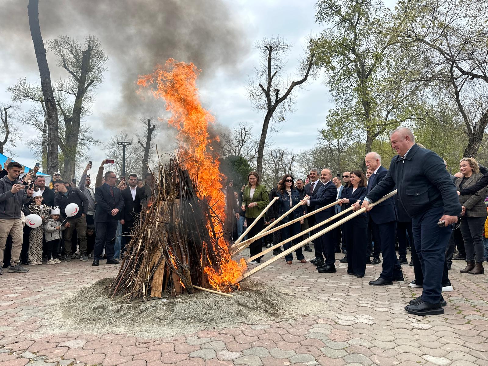 Edirne'de Valilik himayesinde Söğütlük Millet Bahçesi'nde düzenlenen Nevruz Bayramı kutlamalarında; demir dövme, yumurta tokuşturma ve geleneksel ateşten atlama ritüelleriyle baharın gelişi ve Ergenekon'dan çıkış büyük bir coşkuyla kutlandı.