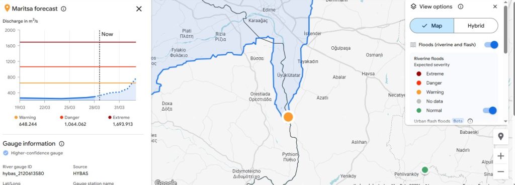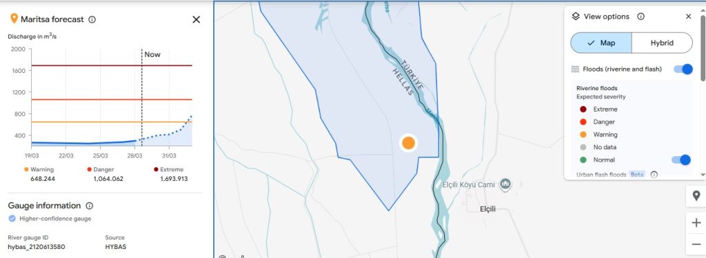 Edirne'de Meriç Nehri debisi yükselişe geçti. Google sel uyarı sistemlerinden gelen son veriler, nehir yatağındaki su seviyesinin Cuma gecesi itibarıyla kritik eşiğe ulaşabileceğine işaret ediyor.