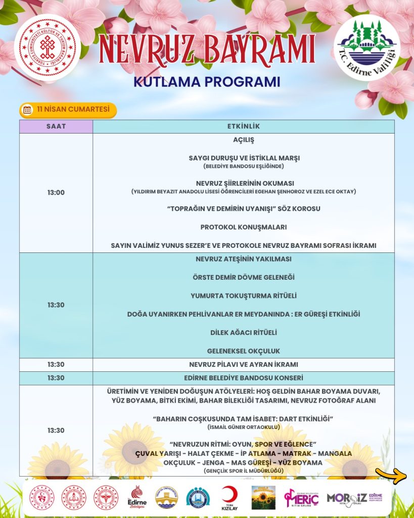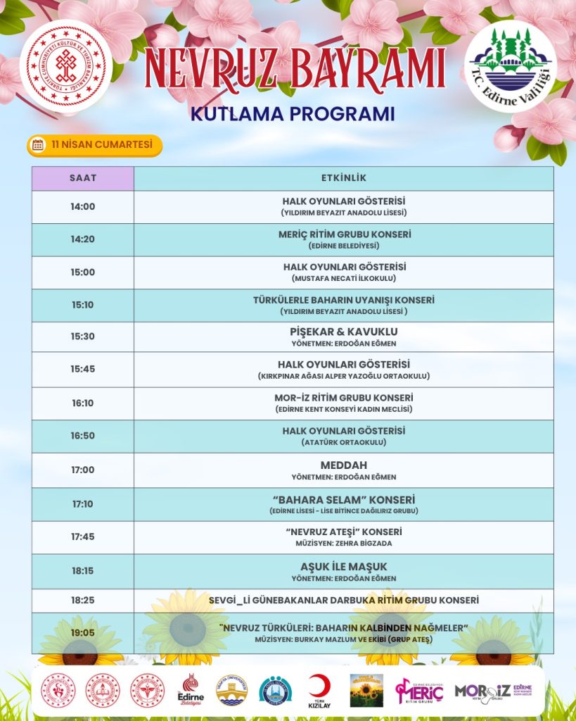 Edirne Valiliği tarafından, Edirne’de 11 Nisan Cumartesi günü düzenlenecek Nevruz Bayramı kutlamaları, renkli etkinliklerle dolu dolu sahne olacak.