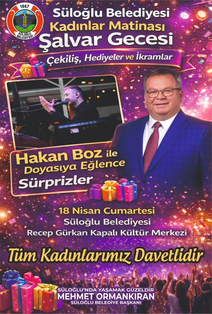 Kadınlar, Edirne'nin Süloğlu ilçesinde belediye başkanlığının düzenlediği şalvar gecesinde şalvarları giyilecek, maniler söylenecek Trakya ezgileriyle bir araya gelecekler. 18 Nisan Cumartesi akşamı gerçekleşecek etkinlikte hem kültürün yaşatılması hem de kadınların eğlenmesini amaçladıklarını belirten Süloğlu Belediye Başkanı Mehmet Ormankıran yaptığı açıklamada; "Bizim ilçelerimizde ve köylerimizde annelerimiz ve büyüklerimiz şalvar giyerdi. Son 10-15 yıl içerisinde şalvar kültürü yok olmaya başladı. Bizlerde ilçemizin kadınlarından gelen talepler sonrası böyle bir gece yapmaya karar verdik. Hem kültürümüzü gençlere anlatacak hem de eğleneceğiz. Kadınlarımıza özel bu gece de ilçemizin değerli evladı sanatçımız Hakan Boz eğlendirecek. Çekiliş ve ikramlarımızla doyasıya bir gece kadınlarımızı bekliyor. Tüm kadınlarımızı bekliyoruz" dedi.