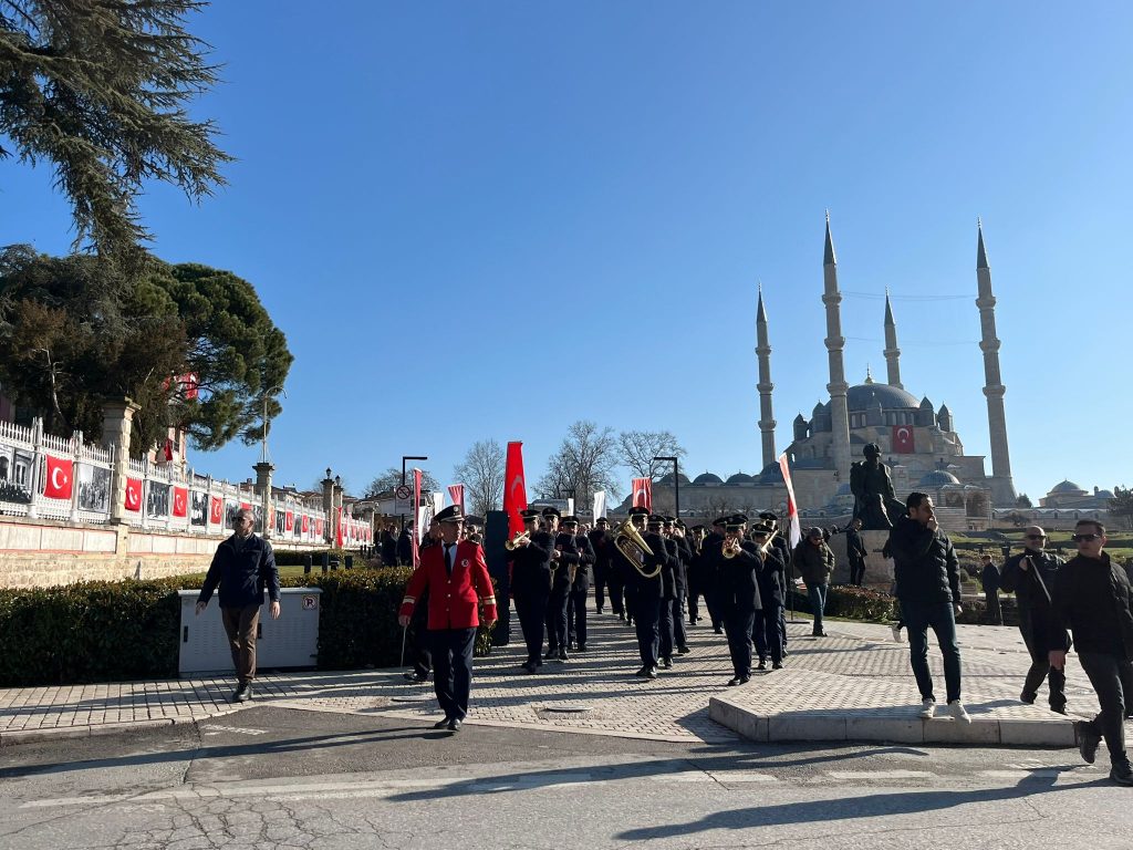 Kutlama programı kapsamında; Edirne Vali Vekili Sıdkı Zehin, Belediye Başkanı Filiz Gencan, eski belediye başkanları Güngör Mazlum ve İbrahim Ay ile Ticaret ve Sanayi Odası Başkanı Sezai Irmak’ın da aralarında bulunduğu geniş bir kortej, tarihi belediye binası önünde toplandı.