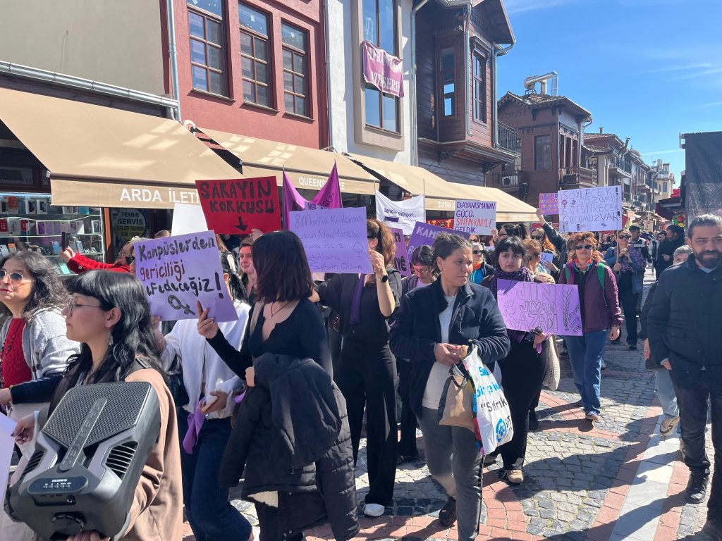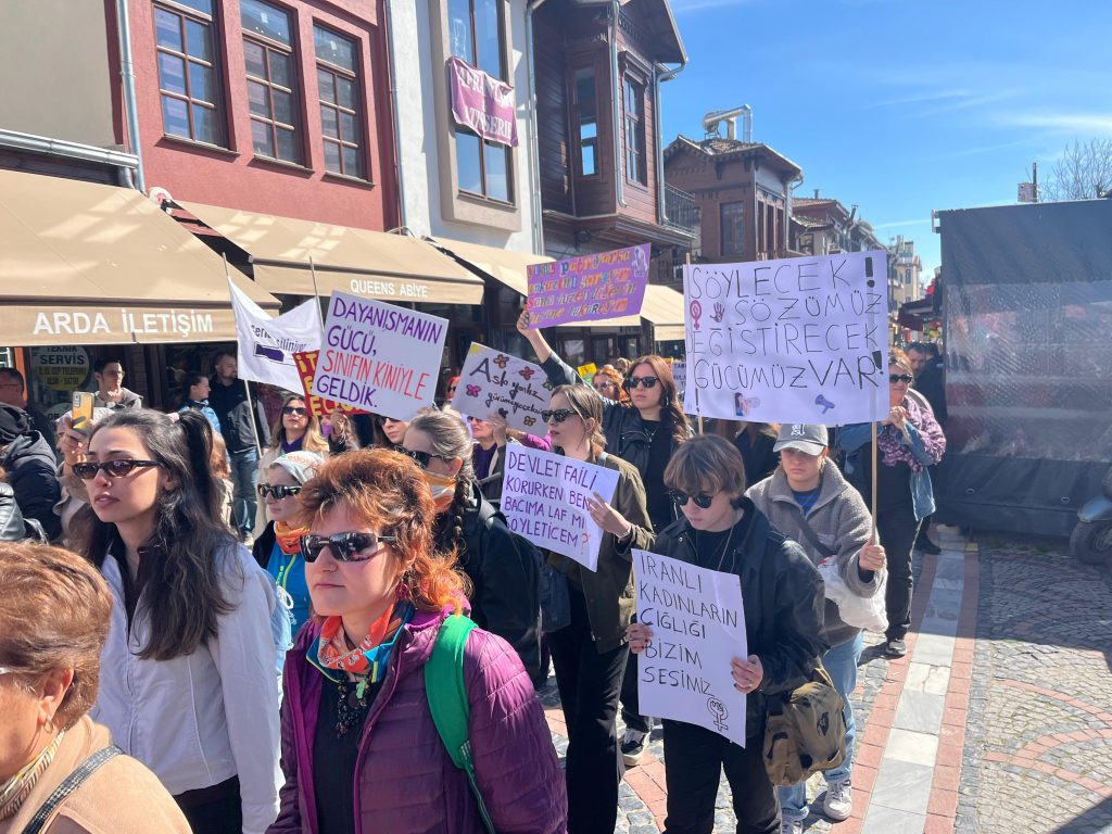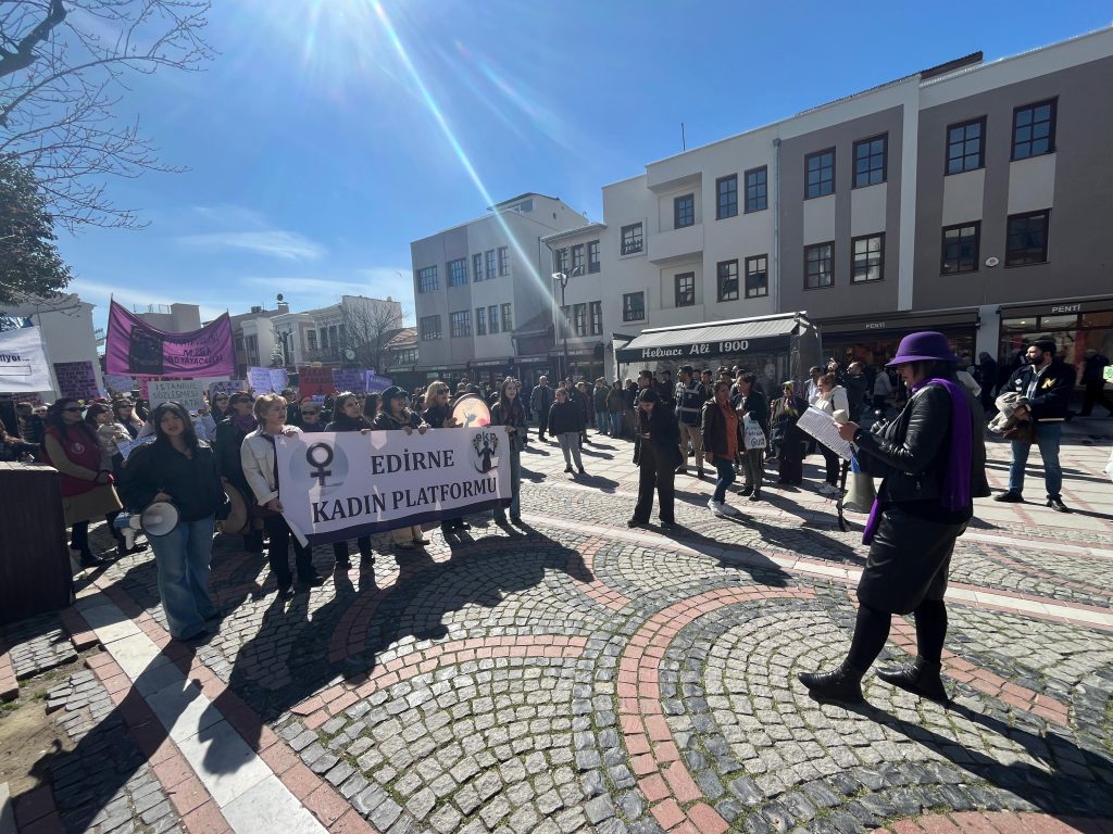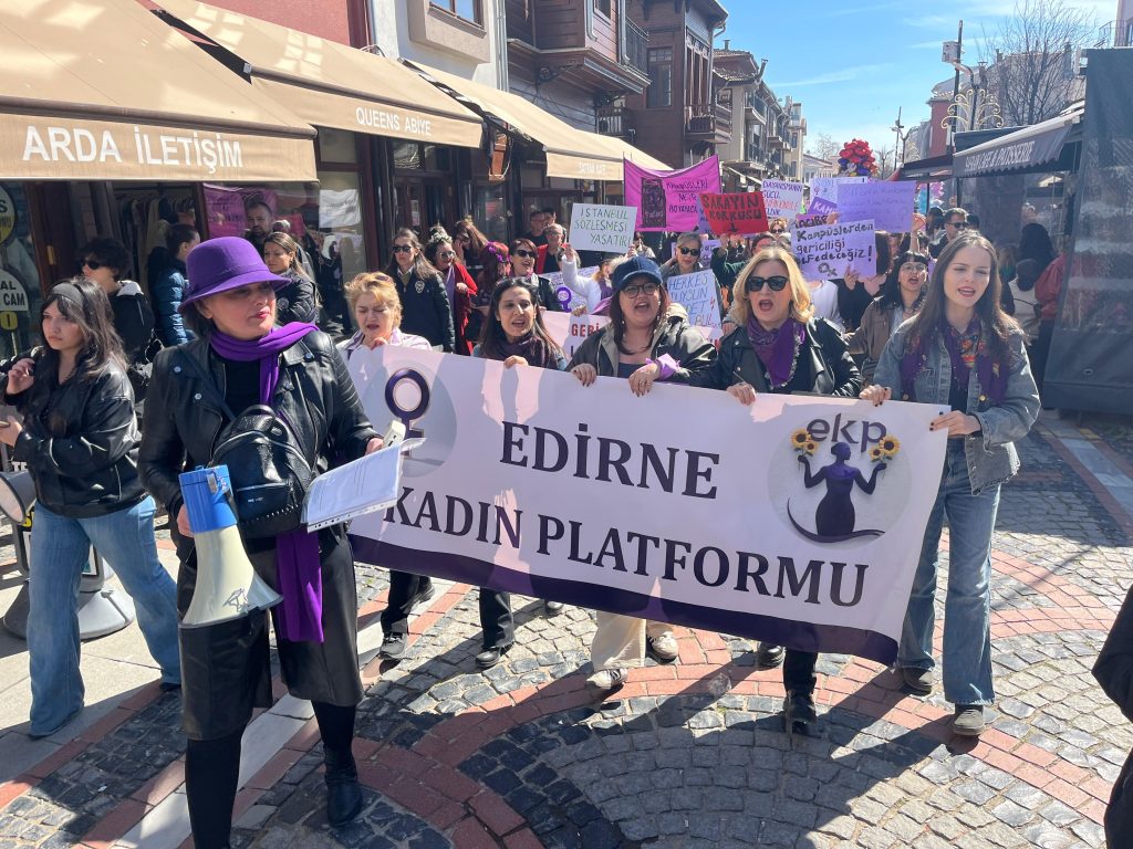 Edirne Kadın Platformu, 8 Mart Dünya Kadınlar Günü kapsamında Eski Cami’den Saraçlar Caddesi’ne yürüyüş düzenledi ve basın açıklaması yaptı. Eğitim Sen Edirne Şube Sekreteri Ayla Haykır, 169 yıl önce New York’ta işçi kadınların verdikleri mücadeleyi hatırlatarak, kadınlara yönelik her tür baskıya karşı seslerini yükselttiklerini vurguladı. Haykır, yoksulluk nedeniyle kız çocuklarının eğitimden koptuğunu, kampüslerde kadınların özgür bilime ulaşmasının önündeki engellere dikkat çekti.