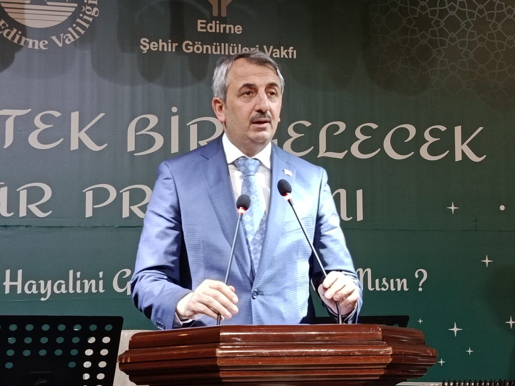 Gecenin önemine dair kapsamlı bir konuşma yapan Edirne Valisi Yunus Sezer, toplumsal yardımlaşmanın bir şehrin karakterini belirlediğini ifade etti. Sezer, "Bugünkü iftar soframız, hem şehrimizin yüce gönüllü insanlarını bir araya getirmek hem de bu kıymetli birliktelikten evlatlarımıza bir eğitim bursu kaynağı oluşturmak gayesiyle kuruldu. Bu ulvi amaca omuz veren, katkı sunan tüm gönül dostlarımıza ve iş insanlarımıza Edirne adına şükranlarımı sunuyorum. Allah her birinizden razı olsun, birliğimizi daim kılsın. Ramazan’ın bereketini hanelerimizde ve kalplerimizde hissetmeliyiz ki gelecek nesillere daha güçlü bir miras bırakabilelim. Biliyorsunuz ki Ramazan; paylaşmanın, küskünlükleri bitirmenin ve mesafeleri gönül köprüleriyle kısaltmanın ayıdır. Bu akşamki tablodan daha büyük bir mutluluk olamaz. Şehir Gönüllüleri Vakfı, isminde çok derin bir manayı barındırıyor. İçinde gönüllü bireylerin olmadığı bir yerleşim yeri, gerçek manada bir şehir sayılamaz; orası maneviyattan yoksun, ruhsuz bir mekandır. Dünyanın pek çok yerinde gökdelenlerin arasında yürürsünüz ancak bir ruh bulamazsınız. Oysa Anadolu’nun veya Edirne’nin bir köyüne gittiğinizde, oradaki kültür ve medeniyet derinliğinin Avrupa’nın en büyük şehirlerinden bile daha köklü olduğunu görürsünüz. Çünkü orada insan vardır, ruh vardır. Yardımların en doğru adrese, en şeffaf şekilde ulaştığı bir güven sistemi kurmak bizim temel görevimizdir. Edirne’de bu çarkın tıkır tıkır işlediğini bilmenizi isterim. Emek veren her bir ferde teşekkürlerimi borç bilirim" dedi.