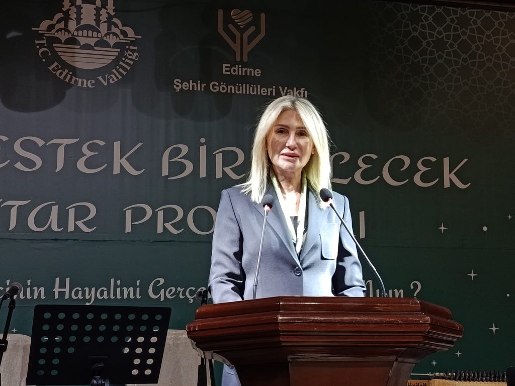 Vakfın mevcut ve gelecek projeleri hakkında bilgilendirme yapan Yönetim Kurulu Başkan Yardımcısı Sibel Yıldırım ise eğitimin toplumsal kalkınmadaki kilit rolüne değindi. Yıldırım, konuşmasında dayanışmanın umudu yeşerttiğini belirterek, "Bugün burada sadece bir yemekte değil, paylaşmanın ve geleceğe dair beslediğimiz umudun etrafında kenetlenmiş durumdayız. Vakfımız, kurulduğu ilk günden bu yana Edirne’deki sosyal bağları kuvvetlendirmek ve özellikle gençlerimizin yolunu aydınlatmak için çalışıyor. Bu akşamki temel gayemiz, üniversiteli gençlerimize 'yalnız değilsiniz' mesajını vermek ve onlara eğitim hayatlarında destek olmaktır. İnanıyoruz ki; bir gencin eğitimine dokunmak, aslında ülkenin kaderine dokunmaktır. Gençlerimizin umudu, bizim en büyük sorumluluk alanımızdır. Bu güzel sofrayı onurlandıran tüm bağışçılarımıza ve gönüllülerimize en içten teşekkürlerimi sunuyorum" şeklinde konuştu.