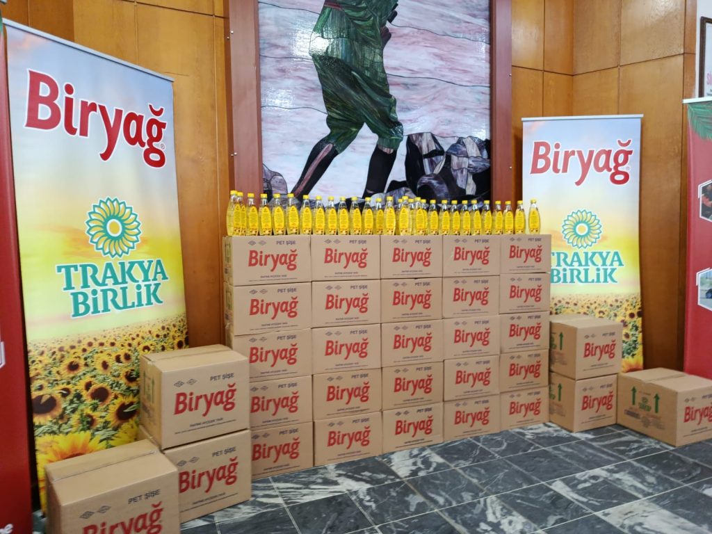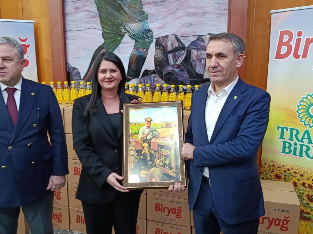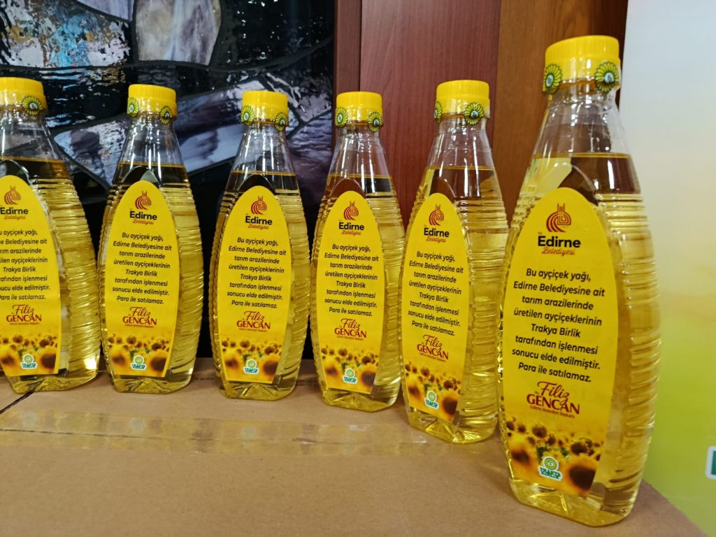 Edirne Belediyesi’ne ait tarım alanlarında üretilen ayçiçekleri, Trakya Birlik iş birliğiyle ayçiçek yağına dönüştürüldü. 4 bin şişe yağ, düzenlenen törenle belediyeye teslim edilirken, ürünlerin kentteki ihtiyaç sahibi vatandaşlara ulaştırılacağı belirtildi.