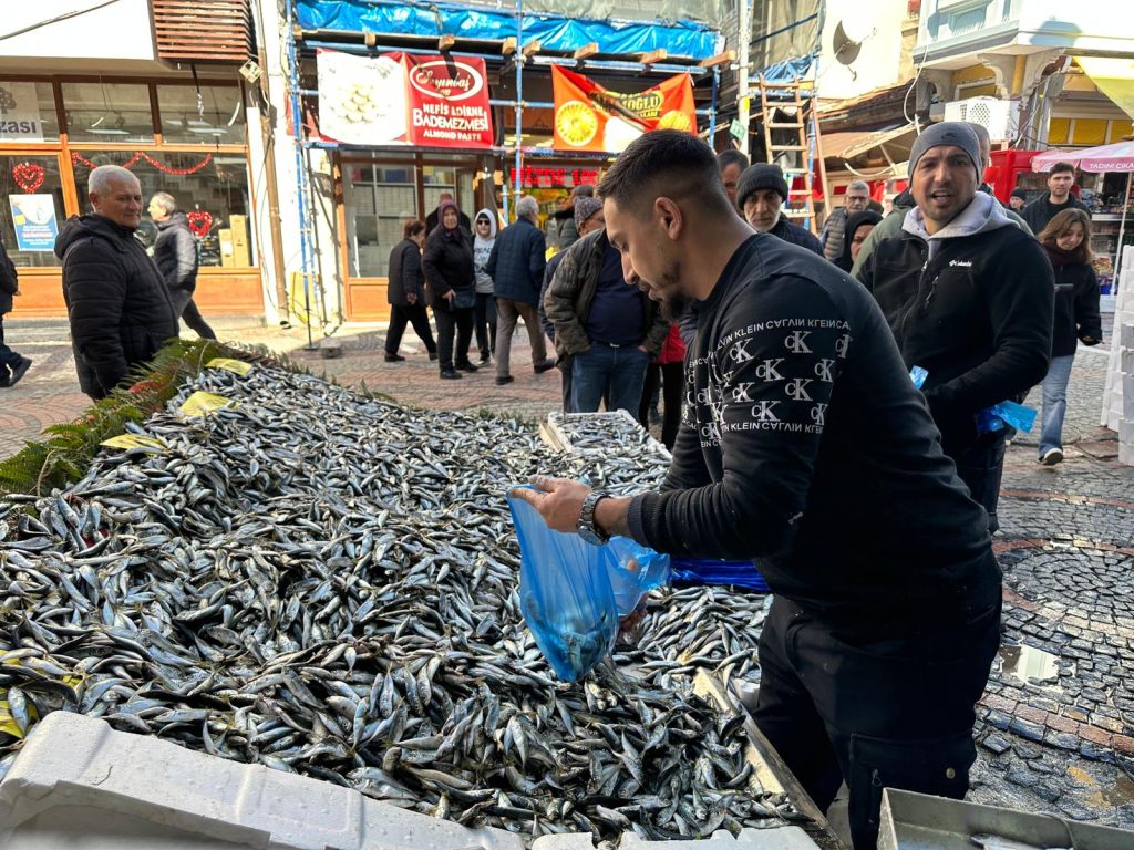 Edirne Balık Pazarı’nda istavrit fiyatındaki sert düşüş, vatandaşları tezgâhlara yöneltti. Türkiye genelinde kilogram fiyatı 200-250 TL aralığında seyreden istavrit, Edirne’de 50 TL’den satışa sunuldu.