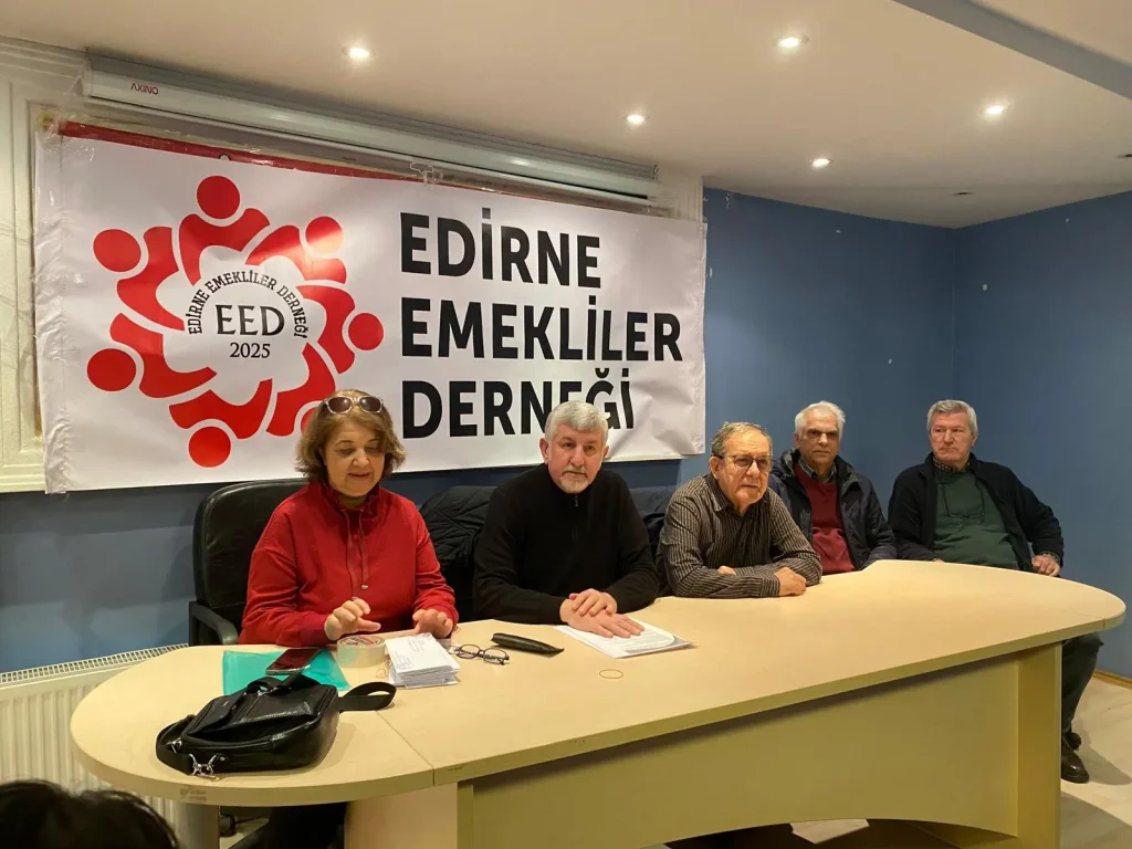 Devrimci İşçi Sendikaları Konfederasyonu (DİSK) Edirne binasında bir araya gelen Edirne Emekliler Derneği üyeleri, basın açıklaması gerçekleştirerek taleplerini dile getirdiler. Basın açıklamasının ardından dernek üyeleri; “Emeklilerin sesinin duyulması amacıyla parti genel merkezlerine PTT’den taleplerin yazıldığı mektupları gönderdiler. 627 adet tutan mektup adetinin gönderim maliyetlerini karşılayamadıkları için sadece parti genel başkanlarına gönderilmek üzere 16 adet mektubu Ankara’ya postaladılar.