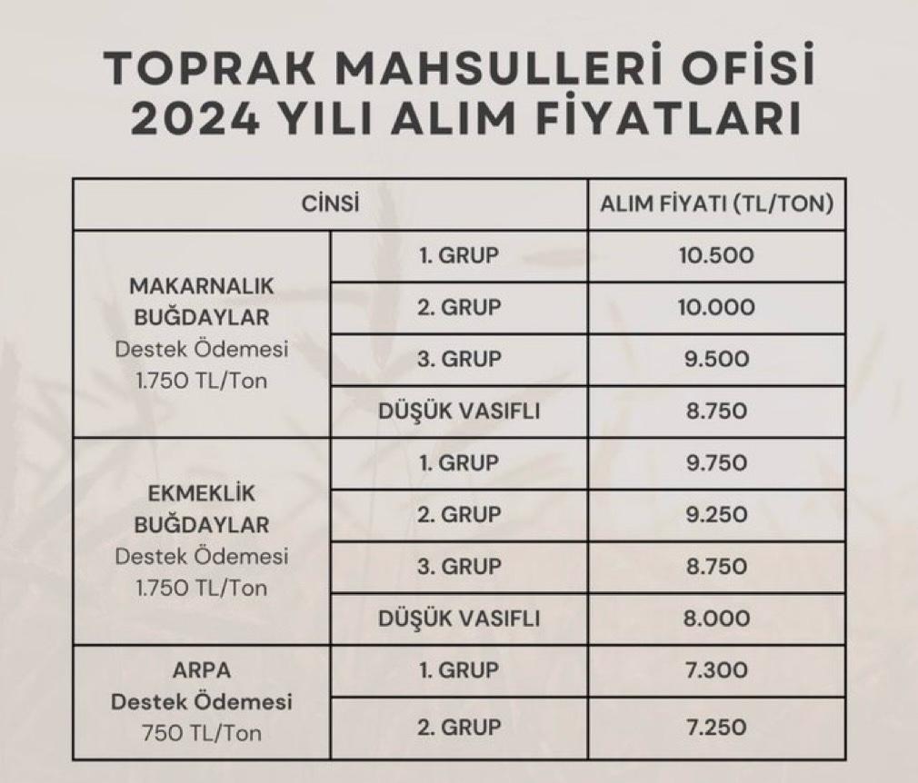 Toprak Mahsulleri Ofisi üreticinin beklediği buğday fiyatlarını açıkladı.