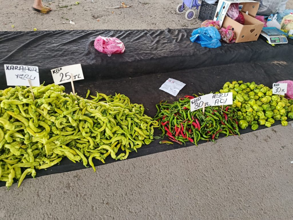 Mevsim sebze ve meyvelerinde yaşanan bolluk, fiyatlara da yansıdı. Tezgâhlarda domates kilosu 15 liradan, çarliston ve dolmalık biber 40-50 liradan, kapya biber 40 liradan satışa sunuldu. Patates ve soğan 10 ile 20 lira arasında alıcı bulurken, yerli patlıcan ise 15-20 lira aralığında satıldı.