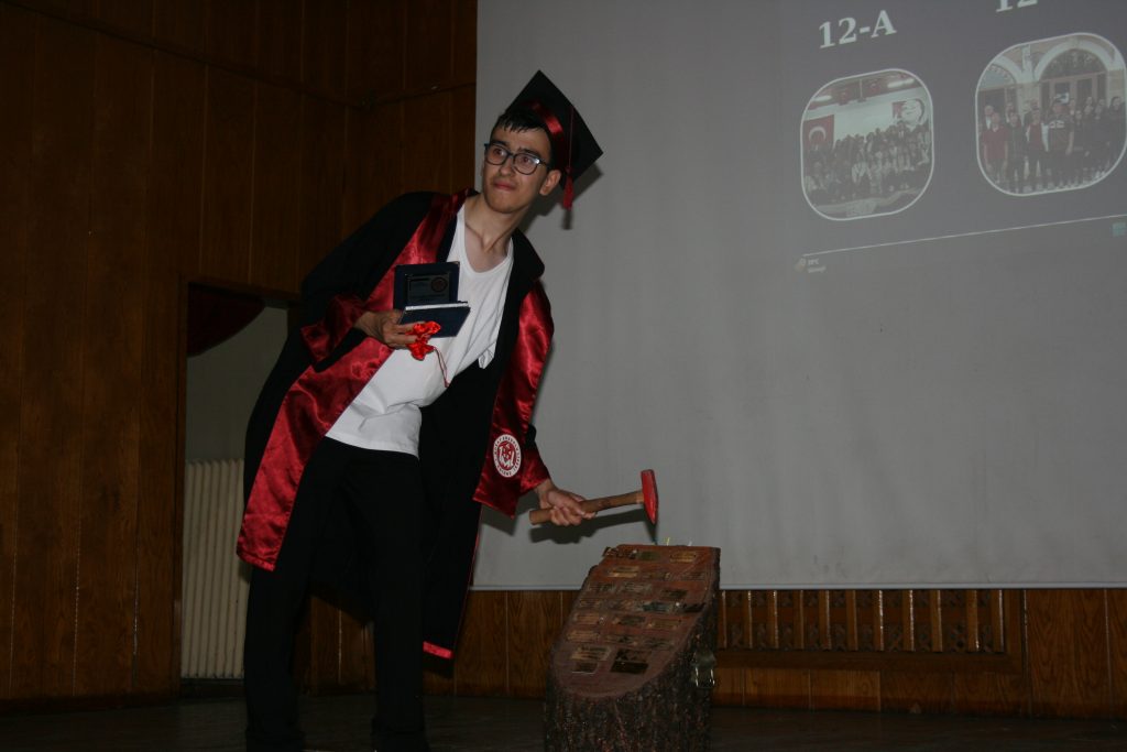 Öz’ün konuşmalarının ardından öğrenciler tarafından hazırlanan dans gösterisi sunulurken, okulu dereceyle tamamlayan öğrencilere ödülleri verildi. Okul birincisi olma başarısı elde eden 12-B sınıfı öğrencilerinden Özgür Coşkunkal, yaş kütüğüne plaket çaktı.
