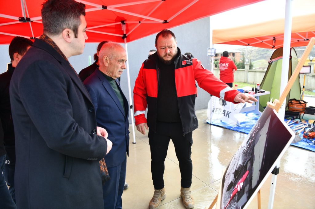 KEDAK ekiplerinin deprem bölgesinde görev yaparken çektiği fotoğraflara dikkat çeken Özcan, “Bir yanda tamamen yıkılmış yapılar, diğer yanda ise tekniğine ve mühendisliğine uygun şekilde yapılmış, dimdik ayakta duran dört şerefeli bir cami var. Bu tablo bize açıkça şunu göstermektedir: Kurallara uygun, mühendislik esaslarına göre yapılan yapılar hayat kurtarır.” ifadelerini kullandı.