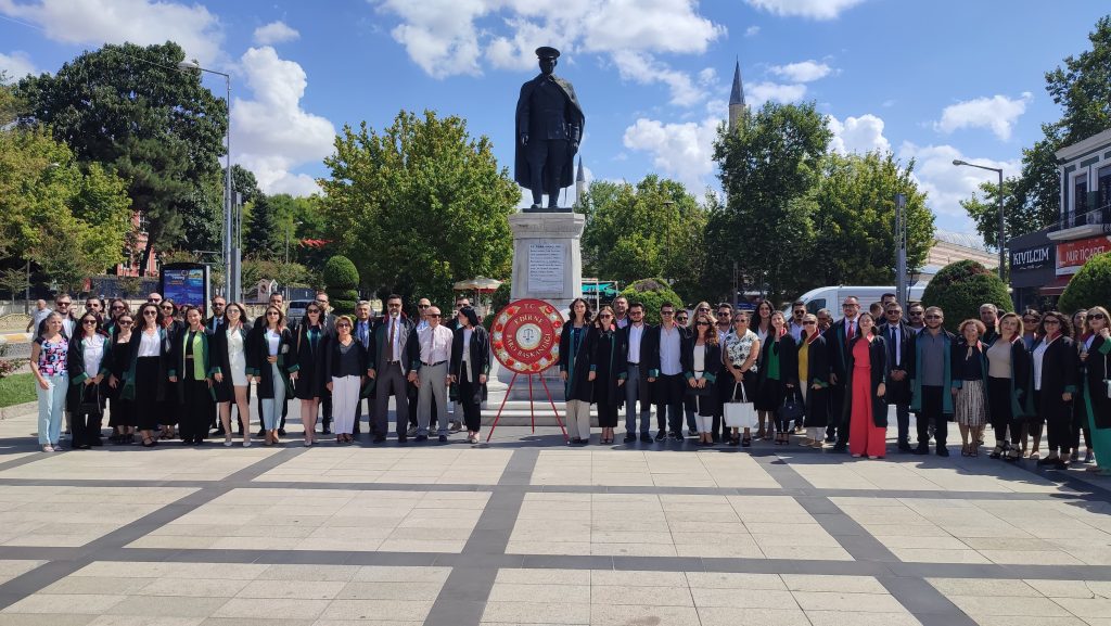 Edirne Barosu tarafından adli tatilin sona erişinin ardından Atatürk Anıtı’nda geleneksel olarak çelenk sunma töreni gerçekleştirildi. Edirne Belediye Başkanı Av. Filiz Gencan Akın, Edirne Barosu Başkanı Av. Gökhan Karakoç ve çok sayıda avukatın katılımıyla gerçekleştirilen törene Edirne Adliyesi'ni temsilen Cumhuriyet Başsavcılığı, Bölge İdare Mahkemesi Başkanlığı gibi kurumların temsilcileri katılmadı.