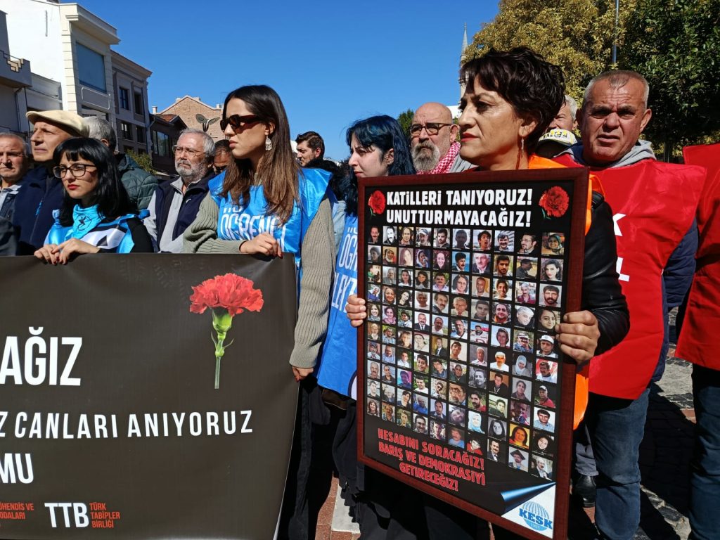 Ankara’nın Altındağ ilçesine bağlı Ulus semtindeki Ankara Garı kavşağında 10 Ekim 2015 tarihinde IŞİD tarafından düzenlenen bombalı intihar saldırısı sonucu 104 kişi hayatını kaybetmişti. Tarihe “Ankara Gar Katliamı” olarak geçen olayın 9’uncu yılı dolayısıyla Edirne Emek Platformu, Saraçlar Caddesi’nde bir basın açıklaması düzenledi. Etkinliğe platform bileşenleri DİSK, KESK, TMMOB ve TTB Edirne temsilcilerinin yanı sıra, siyasi partiler ve sivil toplum kuruluşlarının temsilcileri katıldı.