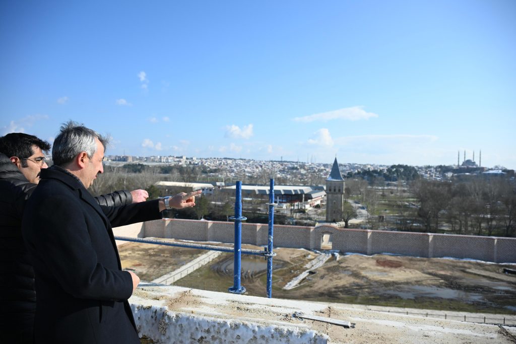 Cumhurbaşkanlığı Milli Saraylar Başkanlığı tarafından ihya ve restorasyon çalışmaları devam eden Edirne Sarayı’nda, çalışmaları yerinde inceleyen Edirne Valisi Yunus Sezer, sarayın yıkımından itibaren geçen yaklaşık 200 yılın ardından, Cihannüma Kasrı’ndan Selimiye Camisi manzarasının görüldüğünü açıkladı.