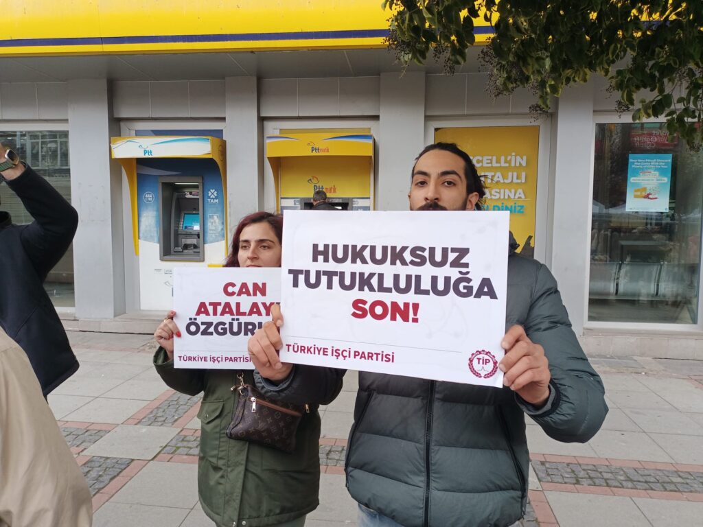 TİP Hatay Milletvekili Can Atalay’ın, Anayasa Mahkemesi’nin tahliye kararına rağmen tutukluluğunu protesto eden TİP Edirne üyeleri, Atalay’ın tahliye edilmesi gerektiğini belirttiler.