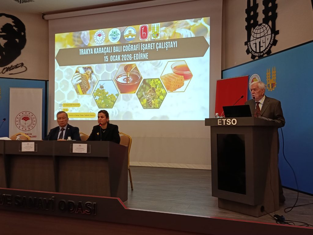 Edirne’de İl Tarım ve Orman Müdürlüğü koordinasyonunda, Edirne Ticaret ve Sanayi Odası (ETSO) ev sahipliğinde “Trakya Karaçalı Balı Coğrafi İşaret Çalıştayı” düzenlendi. ETSO Konferans Salonu’nda gerçekleştirilen çalıştaya; Edirne Valisi Yunus Sezer, Tarım ve Orman Bakanlığı Hayvancılık Politikaları ve Destekleme Daire Başkanı Melikşah Taşkın, Edirne İl Tarım ve Orman Müdürü İslam Köse, ETSO Başkanı Sezai Irmak ile çok sayıda bal üreticisi katıldı.