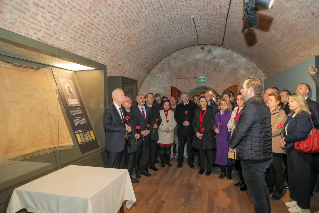 Rektör Hatipler'in yanı sıra senato üyesi rektör yardımcıları, dekanlar, yüksekokul müdürleri, öğretim üyeleri, 174. Alaya ait, üzerinde kan lekelerinin bulunması nedeniyle "kanlı sancak" olarak anılan sancağa karanfil bıraktılar.