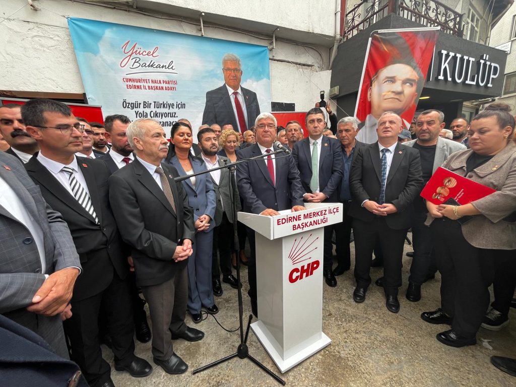 Cumhuriyet Halk Partisi (CHP) Edirne İl Başkanlığı’nda 19 Ekim’de yapılacak olağan genel kurul öncesinde ilk adaylık açıklaması geldi. Partinin önceki dönem merkez ilçe başkanlığını yürüten Yücel Balkanlı, CHP Edirne İl Başkanlığı için aday olduğunu duyurdu. CHP İl Başkanlığı binası önünde düzenlenen açıklamaya CHP Edirne Milletvekili Baran Yazgan, CHP Yüksek Disiplin Kurulu Üyesi Harika Taybıllı, Edirne Belediye Başkanı Filiz Gencan, ilçe ve belde belediye başkanları, il genel meclisi ve belediye meclisi üyeleriyle çok sayıda partili katıldı.