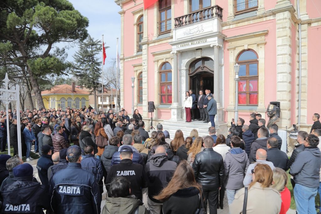 Edirne Belediye Başkanı Filiz Gencan, Ramazan Bayramı dolayısıyla Tarihi Edirne Belediye Binası'nda düzenlenen törende personeliyle bir araya geldi.
