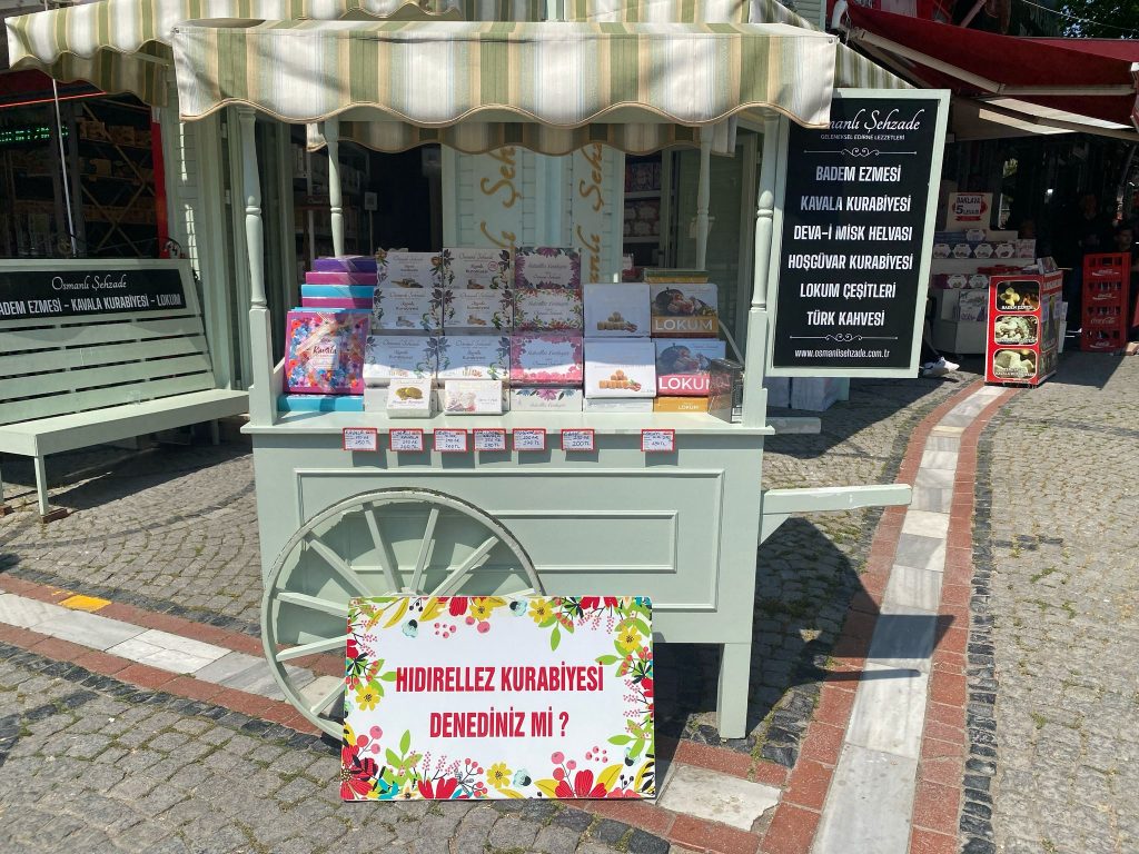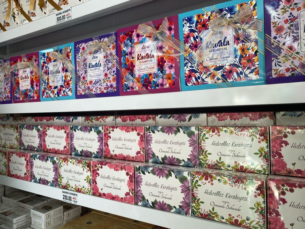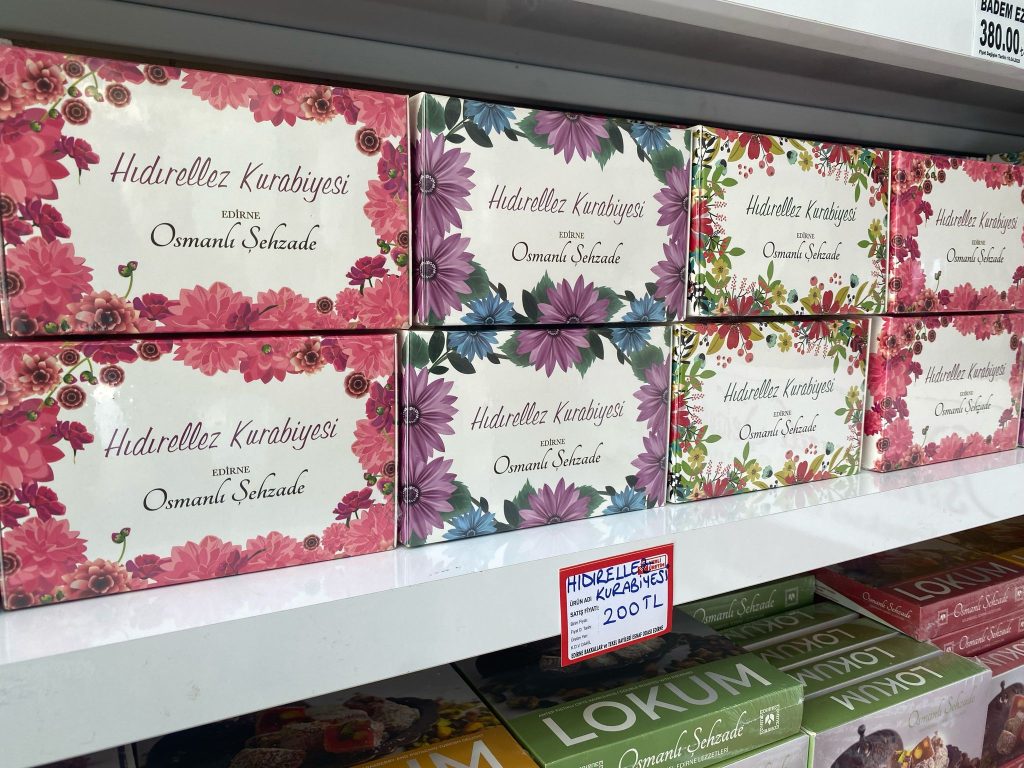 Edirne’de Kakava ve Hıdırellez şenliklerinin hazırlıkları devam ederken, kentin önde gelen kurabiye üreticilerinden Osmanlı Şehzade’nin raflarında da rengarenk kutularıyla dikkatleri üzerine çeken Hıdırellez kurabiyeleri yerlerini aldı. Hıdırellez kurabiyeleri, portakal-limon aromalı ve deva-i misk aromalı olmak üzere iki çeşidiyle, 400 gramı 200 TL'den Osmanlı Şehzade şubelerindeki yerlerini aldı.