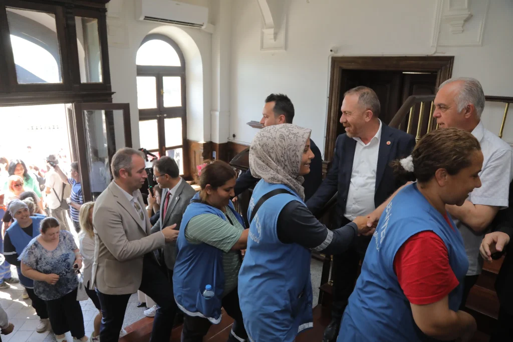 Konuşmasının ardından personelle tek tek bayramlaşan Başkan Gencan Akın, tüm mesai arkadaşlarına teşekkür ederek bayramlarını kutladı.