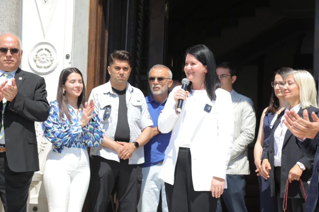 Edirne Belediye Başkanı Filiz Gencan Akın, Kurban Bayramı dolayısıyla belediye personeliyle bayramlaştı. Tarihi Belediye Binası önünde gerçekleşen törende başkan yardımcıları, belediye meclis üyeleri, daire müdürleri ve personel de yer aldı.