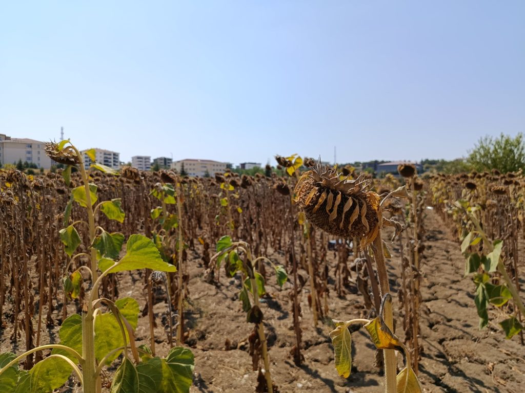 Kuraklığın verimi ciddi şekilde düşürdüğünü belirten Ilgın, “Edirne Türkiye ortalamasının üzerinde bir verime sahip. Bizler de Edirne’nin ayçiçeği üretimindeki bu lider pozisyonunu kaybetmemesi adına Tarımsal Hizmetler Müdürlüğü olarak çeşitli çalışmalar yapmıştık. Bu çalışmalar; çiftçilere hibe Ayçiçek tohumu, hibe gübre, hibe ilaç dağıtımının yanı sıra, ekiliş ve örnek uygulamalarla çiftçilerimize rehber olmak ve farkındalık yaratmak amacıylaydı. Ayçiçeğinin serüveni bu topraklarda tam manasıyla 1950 yılında başlıyor diyebiliriz. Daha sonra 1967 yılında Trakya Birlik’in kurulması ve çeşitli yağ sanayisinin Edirne’ye gelmesiyle birlikte pik noktaya ulaştığı söylenebilir. O günlerde bugünlere Edirne çiftçisinin vazgeçilmez ürünüdür ayçiçeği. Ancak diyebilirim ki; o yıllardan bugünlere en sıkıntılı dönemi yaşıyoruz bu sene. Bunun sebebi; kış kuraklığı ve yaz kuraklığıydı. Maalesef kışın yeterli yağışların yağmaması, yazın da hava sıcaklıklarının son 30 yılın oldukça çok üstünde olması, ayçiçeğinde verimi oldukça olumsuz etkiledi. Gördüğünüz gibi kafalar küçük kaldı, kafalarda döllenme zayıf oldu” dedi.