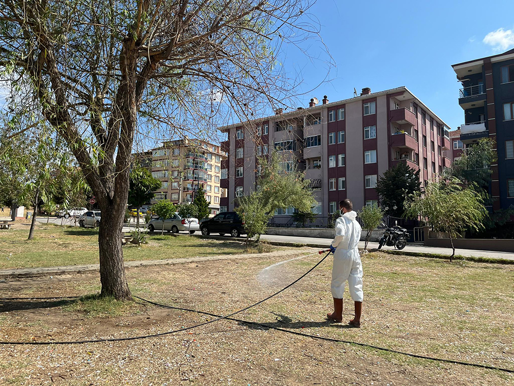 Bu kapsamda Belediye ekiplerince son olarak çok sayıda vatandaşın toplandığı yerlerden biri olan Şehit Astsubay Ömer Halisdemir ve 15 Temmuz Cumhuriyet ve Demokrasi Şehitleri Parkı alanında haşerelere karşı ilaçlama çalışması yapıldı.