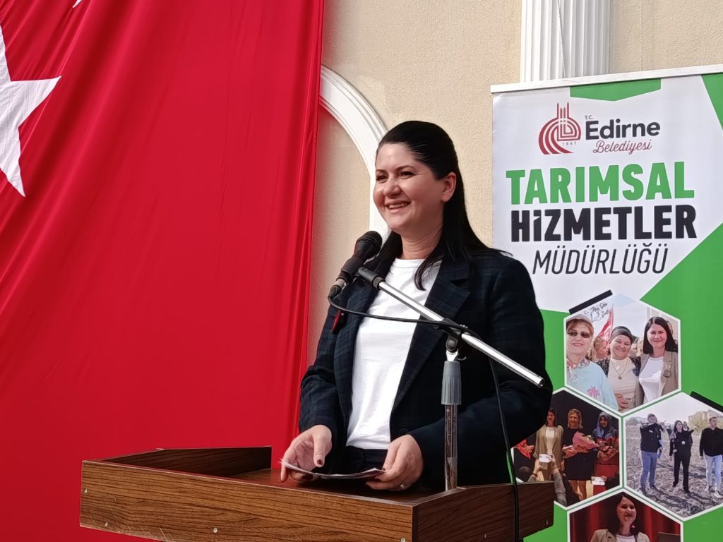 Programın açılış konuşmasını, Karaağaç Mahallesi’nden kadın üretici Alev Ule yaptı. Tarımın hem emeğin hem de geleceğin temeli olduğunu vurgulayan Ule, kadın çiftçilerin çoğu zaman görünmeyen bir emeği temsil ettiğini söyledi. Ule, “Çoğu zaman çiftçilerimizin, özellikle kadın çiftçilerimizin emeği görünmez kalıyor. Edirne Belediyemizin bizlere sunduğu destekler, sadece tarımsal üretime katkı değil; bizlere verilen bir değer, bir güç, bir güven duygusudur. Küçükbaş, büyükbaş ya da kümes hayvanlarımız için sağlanan yem desteği, kuraklığa karşı suyu verimli kullanmamızı sağlayan damlama sulama sistemleri ve tarımda iş güvenliğimizi artıran ilaçlama kitleri; bunların hepsi biz kadınların üretimde daha sağlam durabilmesi için çok kıymetli adımlar. Biz kadın çiftçiler, evimizin yükünü taşırken tarlamızdan da vazgeçmeyen; toprağı da ailesi gibi sahiplenen insanlarız. Belediyemiz bu desteğiyle bizim emeğimize omuz vermiş, bizlere ‘yalnız değilsiniz’ demiştir. Bugün aldığımız her destek, yarının güçlü Edirne’sine atılan bir tohumdur. Biz kadın çiftçiler olarak bu topraklara emek vermeye, geleceğe umut ekmeye devam edeceğiz” şeklinde konuştu.