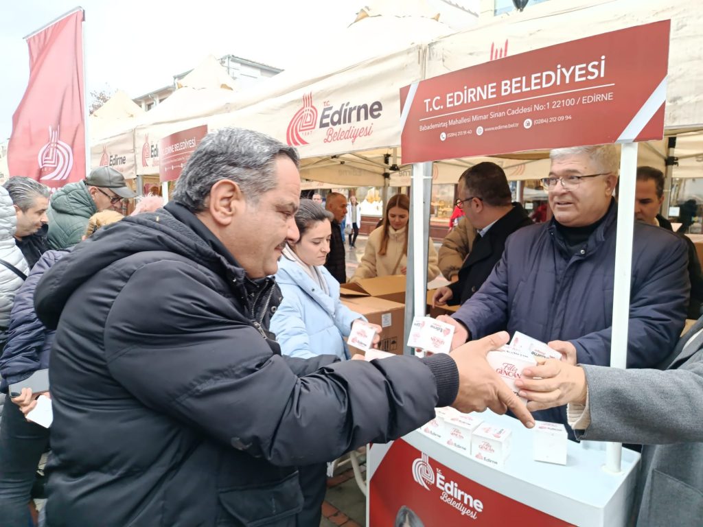 Edirne Belediyesi tarafından, İslam aleminde "üç ayların" ilk başlangıcını simgeleyen Regaip Kandili vesilesiyle, kentin Saraçlar Caddesi ve Eski Cami önünde vatandaşlara kandil simidi ikramında bulunuldu.