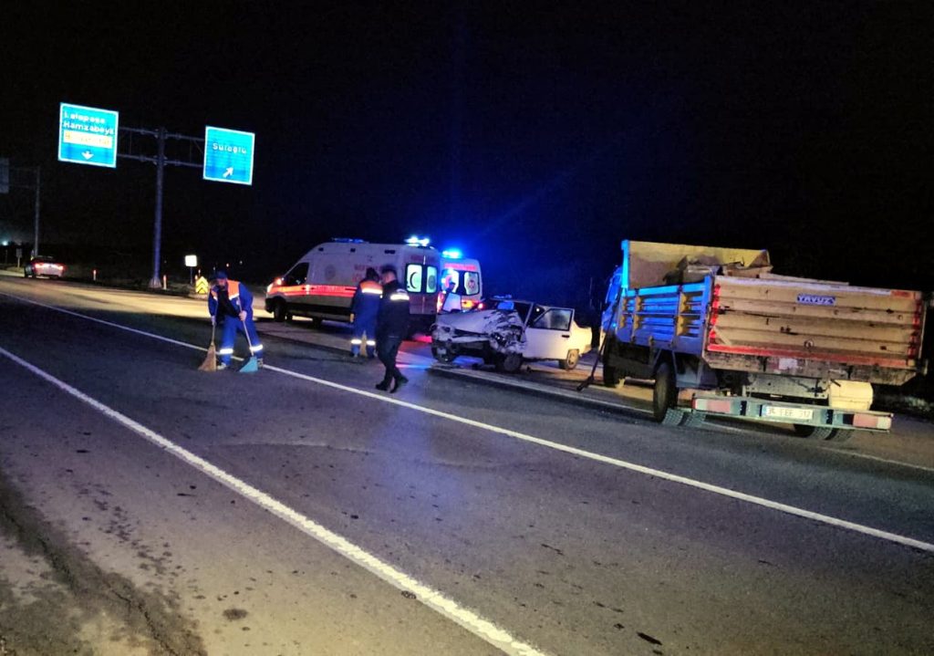 Edirne’de, dönüş yapmak isteyen beton mikserine çarpan otomobilde bulunan 2 kişi yaralandı. Kaza, gece saatlerinde Edirne–Süloğlu karayolu üzerinde meydana geldi. Edinilen bilgiye göre, Ş.Ç. yönetimindeki 22 KA 213 plakalı otomobil, kavşakta dönüş yapmak isteyen E.S. idaresindeki 39 AH 023 plakalı beton mikserine çarptı.