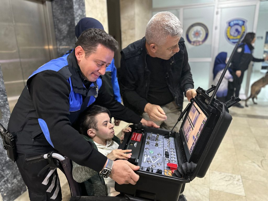 Bunun üzerine harekete geçen ekipler, Karaşin’in isteğini kırmadı. Ekipler, Karaşin’i bugün evinden alarak Edirne Emniyet Müdürlüğü binasına getirdi. Toplum Destekli Polis yardımıyla müdürlüğe getirilen Karaşin, narkotik köpeğiyle tanışıp, bomba imha aracı kullandı ve oluşturulan temsili alanla olay yeri inceleme faaliyetinde bulundu.