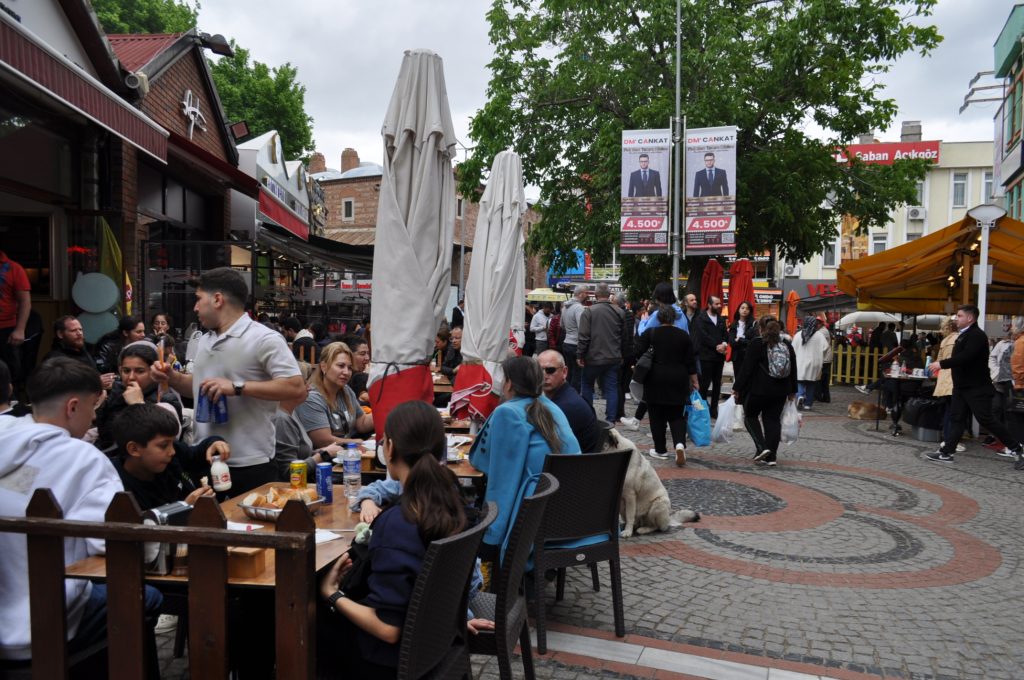 Edirne’de 1 Mayıs Emek ve Dayanışma Bayramı Saraçlar Caddesi’nde kutlanırken, şehre gelen yerli yabancı misafirler de ciğerci dükkanlarının önünde uzun kuyruklar oluşturdu.