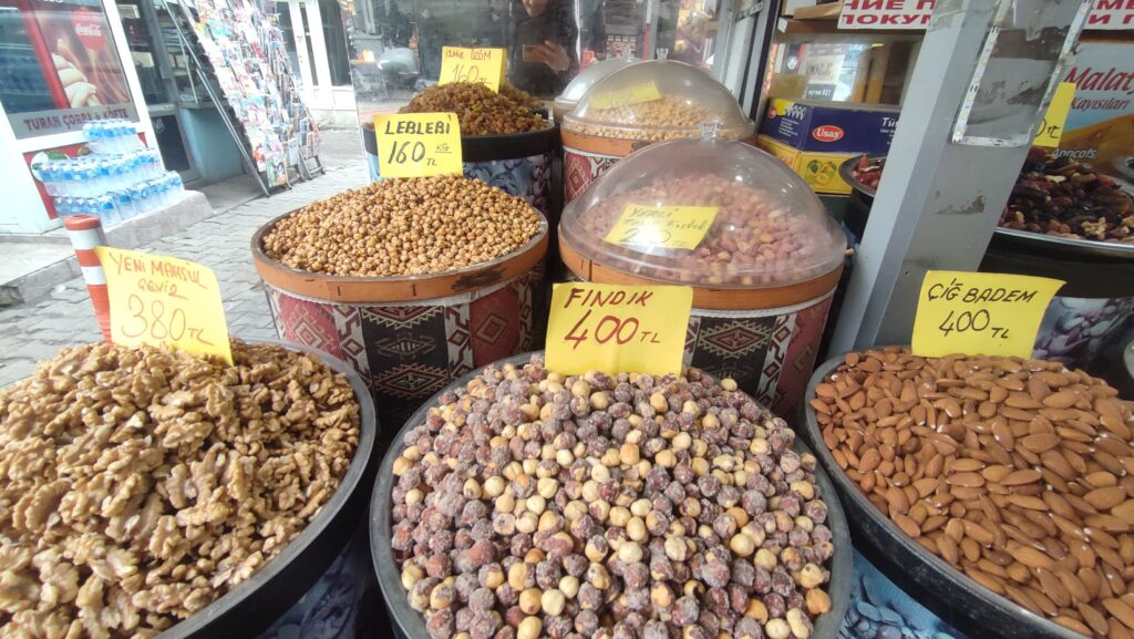 Kuruyemiş dükkanlarında ise kuruyemiş kilogram fiyatları ise şu şekilde; Antep fıstığı 600 lira, kaju 450-500 lira, badem 400 lira, fındık 400 lira, ceviz 380 lira, leblebi 160 lira, tuzlu fıstık 200 lira. Adem Batuhan SEVER