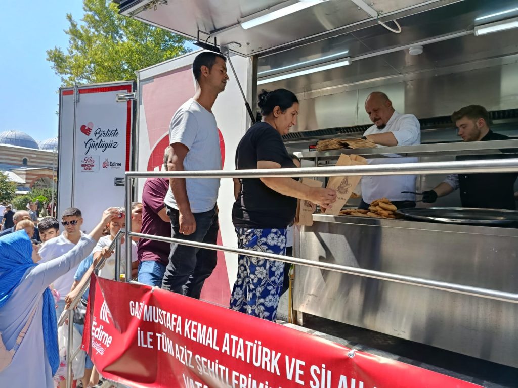 Edirne Belediyesi, 30 Ağustos Zafer Bayramı dolayısıyla Atatürk, silah arkadaşları ve şehitlerin anısına kentin üç farklı noktasında yaklaşık 10 bin lokma ikram etti.