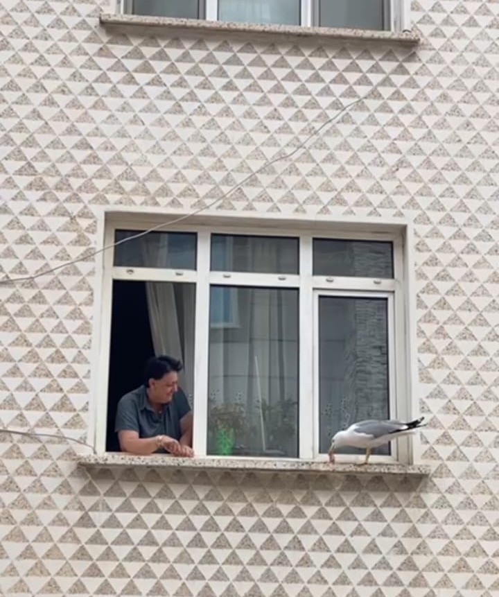 Yaklaşık 3 yıldır penceresine gelen martının isteğini kıramayan Aynur Özdemir ise ona evde hazırladığı yemeklerden veriyor. Martı ‘Hasan’ın sonradan dişi olduğunu öğrenen Özdemir, 4 tane de yavrusu olduğunu ve ‘Hasan’ın kendisinden aldığı yemekleri, yavrularıyla da paylaştığını ifade etti.