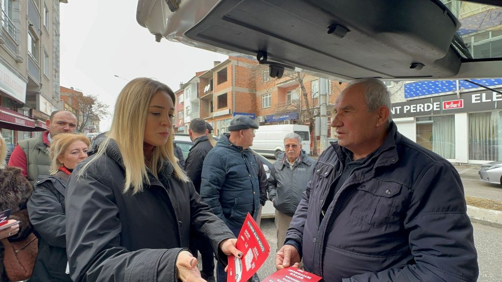 Cumhuriyet Halk Partisi (CHP) Edirne İl Başkanı Harika Taybıllı ve beraberindeki yönetim kurulu üyeleri, merkez ilçe örgütü, il-ilçe gençlik kolları, kadın kolları, belediye meclis üyeleri ve mahalle temsilcileri ile Kıyık Caddesi üzerindeki vatandaşlar ve esnafla bir araya geldi. Taybıllı ve beraberindekiler, vatandaşların özellikle ekonomik sıkıntılarını dinleyerek, ilk seçimde desteklerini beklediklerini söyledi. Ayrıca heyet, CHP’nin ‘Asgari Ücret Talebimiz Otuz, Bunun Altına Yokuz!’ yazılı broşürünü dağıttı.
