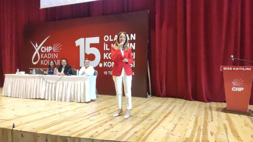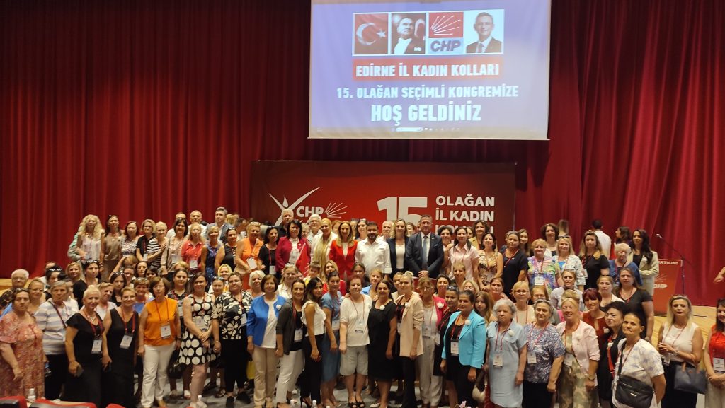 CHP Edirne İl Kadın Kolları 15’inci Olağan Seçimli Genel Kurulu, CHP Genel Başkan Yardımcısı Kadın Kolları Genel Başkanı Aylin Nazlıaka’nın katılımıyla gerçekleştirildi. Tek liste ile seçime giden mevcut İl Kadın Kolları Başkanı Çiğdem Gegeoğlu, yeniden seçilerek güven tazeledi. Genel Kurulda Konuşan Kadın Kolları Genel Başkanı Aylin Nazlıaka; “Bir kişi, tek adam bir gece yarısı üç kez ‘boş ol’ diyerek İstanbul Sözleşmesi’ni feshedebiliyor. Adalet Bakanı düşünün, kadınların eşitlik hakkı olan ‘Medeni Kanunu’nu sil baştan yazacağız’ diyebiliyor. Biz, o ‘Medeni Kanunu’nu sil baştan yazacağız’ diyenleri siyasetten sileceğiz” dedi.