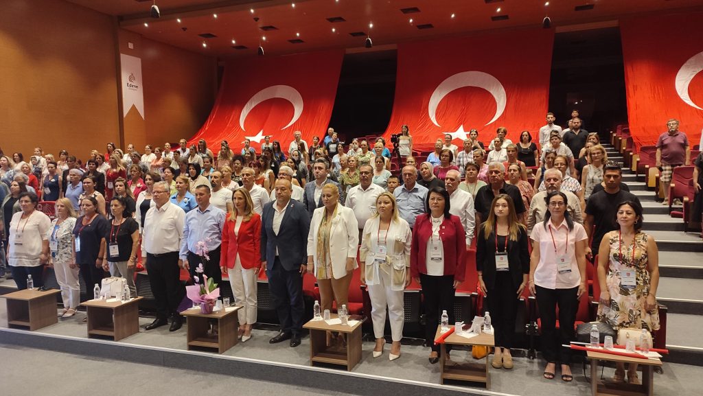 Saygı duruşu ve İstiklal Marşı’nın okunmasıyla başlayan genel kurulda konuşan CHP Kadın Kolları Genel Başkanı Aylin Nazlıaka, her geçen gün kadınların hakkının daha fazla gasp edildiğinin altını çizerek; “Bu kongrede ‘Değişimin yüzyılı, yüzyılın değişimi diye yola çıkan Genel Başkanımız Sayın Özgür Özel’in başlattığı bu koşuyu ilk seçimlerde iktidara taşıyacak olan öncü kadın kadroları belirleyeceğiz. Ben artık öyle görüyorum ki partimiz artık iktidara ilk seçimlerde gelecek. Bunun için yapmamız gereken tek şey var; bir ve beraber olmak, omuz omuza, yürek yüreğe mücadele etmek. Öylesine zorlu bir süreçten geçiyoruz ki her geçen gün ülkemizin kurucusu ve kurtarıcısı ebedi liderimiz Gazi Mustafa Kemal Atatürk’ün ilke ve devrimlerine yönelik saldırılar var. Her geçen gün kadınların hakları gasp edilmeye çalışılıyor. Bir kişi, tek adam bir gece yarısı üç kez ‘boş ol’ diyerek İstanbul Sözleşmesi’ni feshedebiliyor. Adalet Bakanı düşünün, kadınların eşitlik hakkı olan ‘Medeni Kanunu’nu sil baştan yazacağız’ diyebiliyor. Biz, o ‘Medeni Kanunu’nu sil baştan yazacağız’ diyenleri siyasetten sileceğiz” şeklinde konuştu.